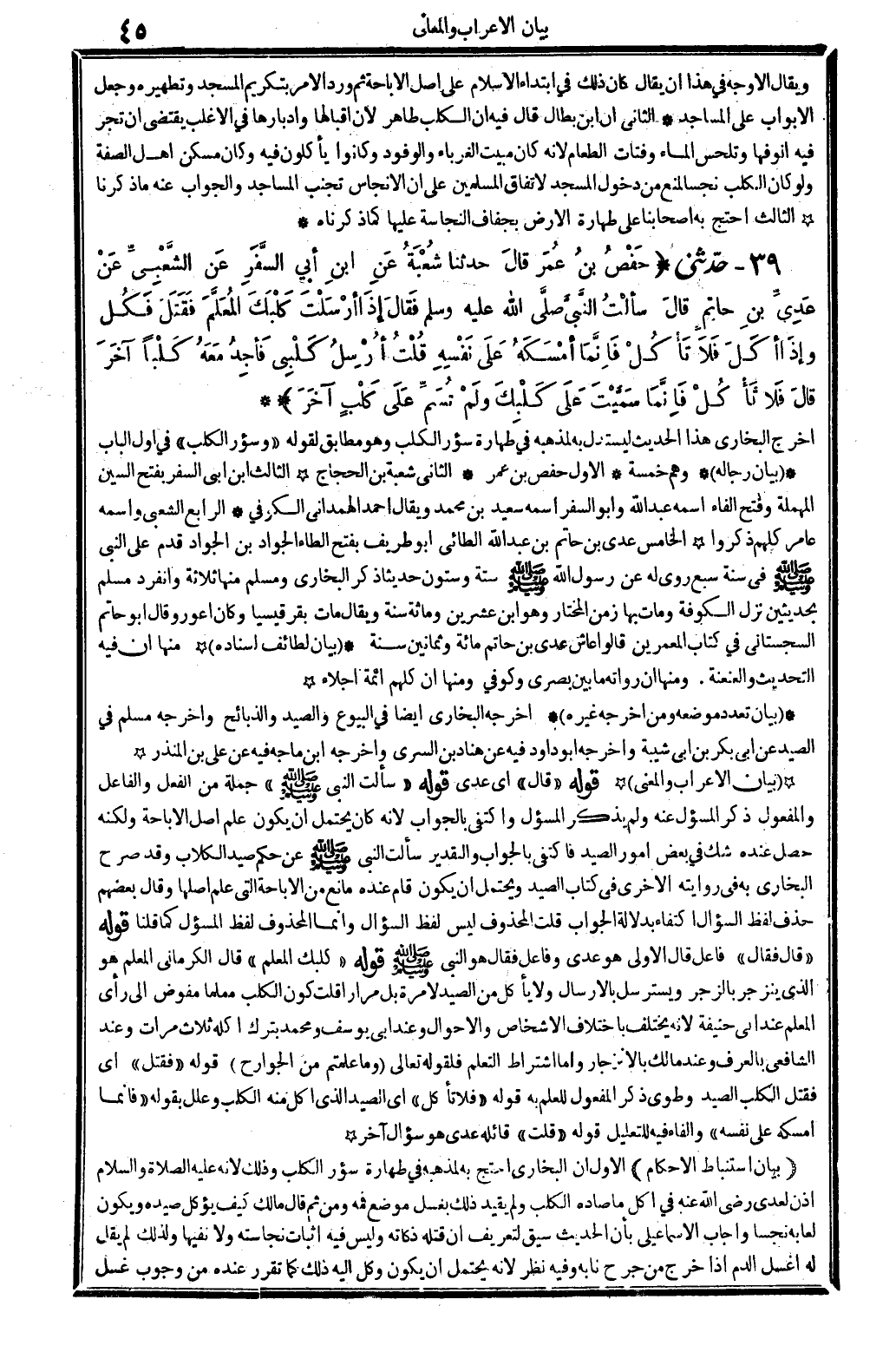 175 - حدّثنى حَفْصُ بنُ عُمَر قالَ حَدثنَا شُعْبَةُ عَنِ ابنِ أبي السَّفَرِ عَن الشَّعْبِيِّ عَنْ عَدِيِّ بنِ حاتمِ قالَ سألْتُ النَّبيَّ صلَّى الله عَلَيْهِ وَسلم فَقالَ إذَا أرْسَلْتَ كَلْبَكَ المُعَلَّمَ فَقَتَل فَكُل وإذَا أكَلَ فَلاَ تَأْكُلْ فَاِنَّمَا أمْسَكَهُ عَلَى نَفْسِهِ قُلْتُ أُرْسِلُ كَلْبِي فَأجِدُ مَعَهُ كَلْباً آخَرَ قالَ فَلا تَأْكُلْ فَاِنَّمَا سَمَّيْتَ عَلَى كَلْبِكَ ولَمْ تُسَمِّ عَلَى كَلْبٍ آخَرَ..
