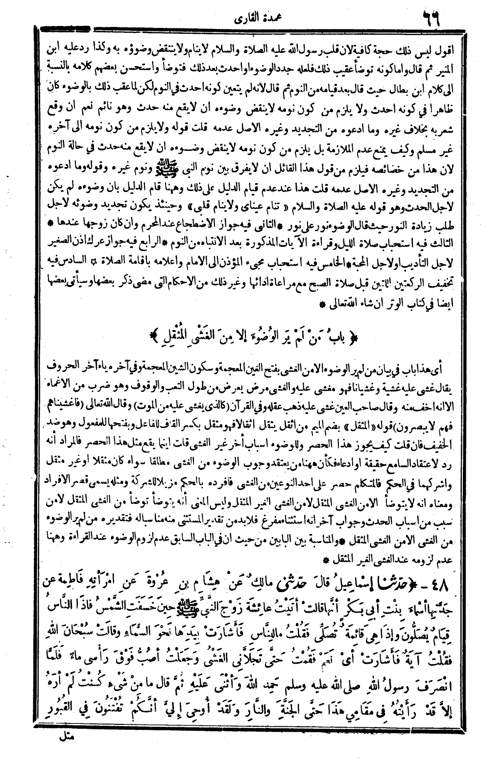 37 - (بابُ مَنْ لَمْ يرَ الوُضُوءَ إِلَّا مِنَ الغَشْيِ المُثْقِلِ)