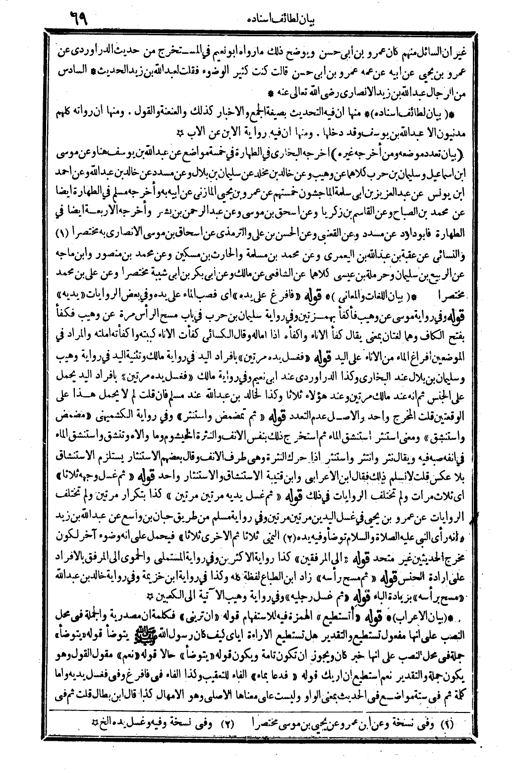 غير أَن السَّائِل مِنْهُم كَانَ عَمْرو بن أبي حسن، ويوضح ذَلِك مَا رَوَاهُ أَبُو نعيم فِي (الْمُسْتَخْرج) من حَدِيث الدَّرَاورْدِي عَن عَمْرو بن يحيى عَن أَبِيه عَن عَمه عَمْرو بن أبي حسن. قَالَ: كنت كثير الْوضُوء فَقلت لعبد الله بن زيد ... الحَدِيث السَّادِس: من الرِّجَال عبد الله بن زيد الْأنْصَارِيّ، رَضِي الله تَعَالَى عَنهُ.