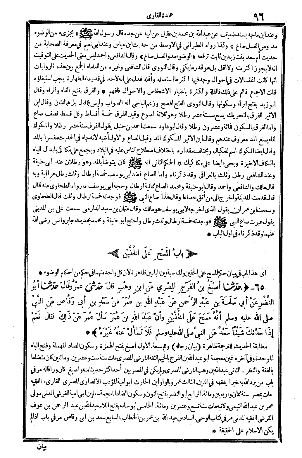 202 - حدّثنا أصْبَغُ بنُ الفَرَجِ المِصْرِيُّ عَنِ ابنِ وهْبٍ قالَ حدّثنى عمْرٌ وقَالَ حدّثنا أبُو النَّضْرِ عَنْ أبي سَلَمَةَ بنِ عَبْدِ الرَّحْمنِ عَنْ عَبْدِ اللَّهِ بن عُمَرَ عنْ سَعْدِ بنِ أبي وَقَّاصٍ عَنِ النَّبِّي صلى الله عَلَيْهِ وَسلم أنَّهُ مَسَحَ عَلَى الخُفَّيْنِ وأنّ عَبْدَ اللَّهِ بنَ عُمَرَ سَألَ عُمرَ عَنْ ذَلِكَ فَقَالَ نَعَمْ إذَا حَدَّثكَ شَيْئاً سَعْدٌ عَنِ النبيِّ صلى الله عَلَيْهِ وَسلم فَلاَ تَسْأَلْ عَنْهُ غَيْرَهُ.