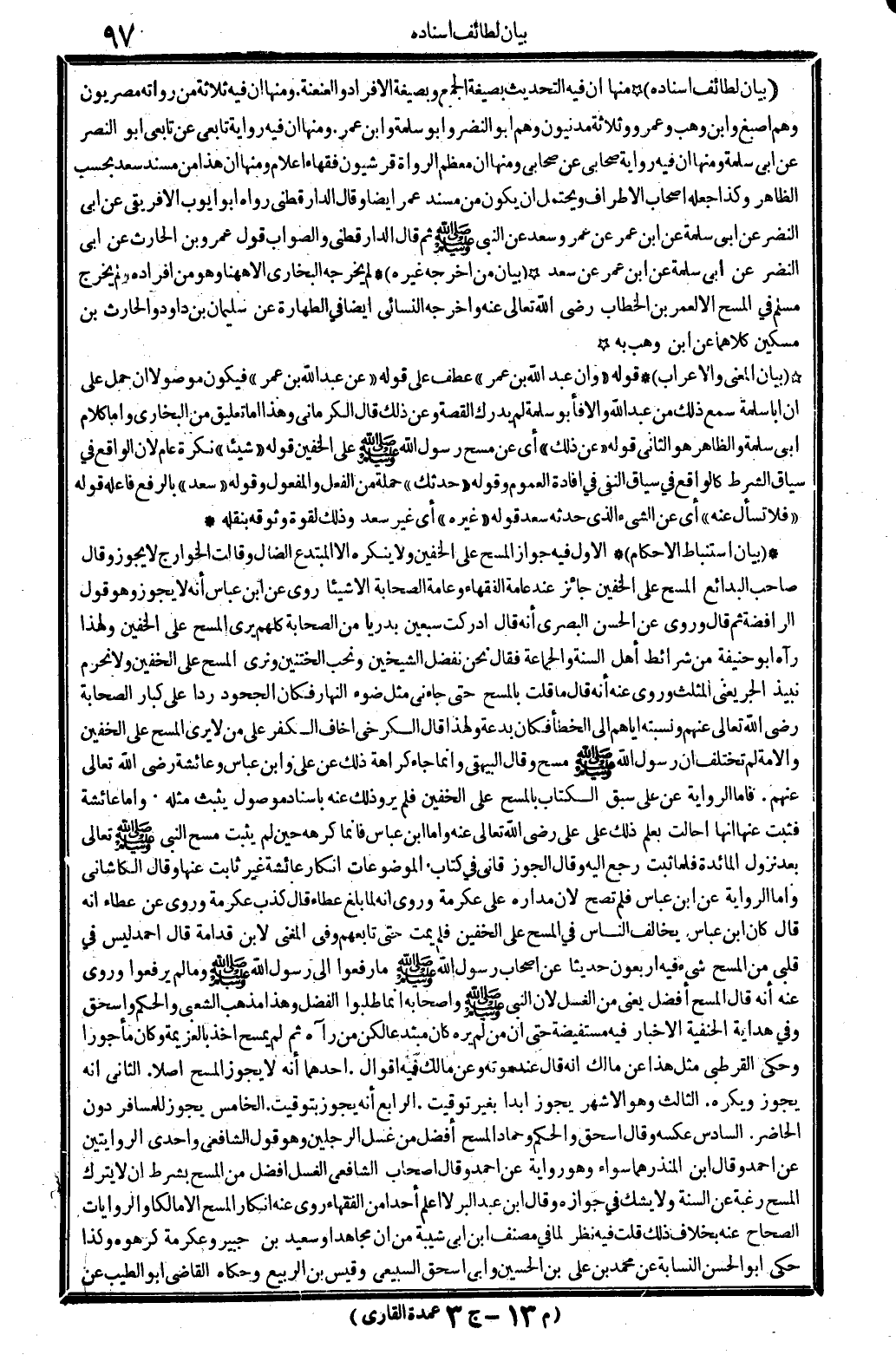 بَيَان استنباط الْأَحْكَام الأول: فِيهِ جَوَاز الْمسْح على الْخُفَّيْنِ وَلَا يُنكره إلاَّ المبتدع الضال. وَقَالَت الخوراج: لَا يجوز. وَقَالَ صَاحب (الْبَدَائِع) : الْمسْح على الْخُفَّيْنِ جَائِز عِنْد عامفة الْفُقَهَاء، وَعَامة الصَّحَابَة إلاَّ شَيْئا رُوِيَ عَن ابْن عَبَّاس أَنه لَا يجوز، وَهُوَ قَول الرافضة. ثمَّ قَالَ: وَرُوِيَ عَن الْحسن الْبَصْرِيّ أَنه قَالَ: أدْركْت سبعين بَدْرِيًّا من الصَّحَابَة كلهم يرى الْمسْح على الْخُفَّيْنِ، وَلِهَذَا رَآهُ أَبُو حنيفَة من شَرَائِط أهل السّنة وَالْجَمَاعَة. فَقَالَ: نَحن نفضل الشَّيْخَيْنِ، ونحب الخنتين، ونرى الْمسْح على الْخُفَّيْنِ، وَلَا نحرم نَبِيذ الْجَرّ. يَعْنِي: المثلث؛ وَرُوِيَ عَنهُ أَنه قَالَ: مَا قلت بِالْمَسْحِ حَتَّى جَاءَنِي مثل ضوء النَّهَار، فَكَانَ الْجُحُود ردا على كبار الصَّحَابَة، رَضِي الله تَعَالَى عَنْهُم، ونسبته إيَّاهُم إِلَى الْخَطَأ، فَكَانَ بِدعَة، وَلِهَذَا قَالَ الْكَرْخِي: أَخَاف الْكفْر على من لَا يرى الْمسْح على الْخُفَّيْنِ، وَالْأمة لم تخْتَلف أَن رَسُول الله صلى الله عَلَيْهِ وَسلم مسح. وَقَالَ الْبَيْهَقِيّ: وَإِنَّمَا جَاءَ كَرَاهَة ذَلِك عَن عَليّ وَابْن عَبَّاس وَعَائِشَة، رَضِي الله تَعَالَى عَنْهُم. فَأَما الرِّوَايَة عَن عَليّ سبق الْكتاب بِالْمَسْحِ على الْخُفَّيْنِ فَلم يرو ذَلِك عَنهُ بِإِسْنَاد مَوْصُول يثبت مثله. وَأما عَائِشَة فَثَبت عَنْهَا أَنَّهَا أحالت بِعلم ذَلِك على عَليّ، رَضِي الله تَعَالَى عَنهُ، وَأما ابْن عَبَّاس فَإِنَّمَا كرهه حِين لم يثبت مسح النَّبِي صلى الله تَعَالَى عَلَيْهِ وَسلم بعد نزُول الْمَائِدَة، فَلَمَّا ثَبت رَجَعَ إِلَيْهِ. وَقَالَ الْجَوْز قاني فِي (كتاب الموضوعات) : إِنْكَار عَائِشَة غير ثَابت عَنْهَا. وَقَالَ الكاشاني: وَأما الرِّوَايَة عَن ابْن عَبَّاس فَلم تصح لِأَن مَدَاره على عِكْرِمَة، وَرُوِيَ أَنه لما بلغ عَطاء قَالَ: كذب عِكْرِمَة، وَرُوِيَ عَن عَطاء أَنه قَالَ: كَانَ ابْن عَبَّاس يُخَالف النَّاس فِي الْمسْح على الْخُفَّيْنِ فَلم يمت حَتَّى تَابعهمْ، وَفِي (الْمُغنِي) لِابْنِ قدامَة: قَالَ أَحْمد: لَيْسَ فِي قلبِي من الْمسْح شَيْء، فِيهِ أَرْبَعُونَ حَدِيثا عَن أَصْحَاب رَسُول الله صلى الله عَلَيْهِ وَسلم، مَا رفعوا إِلَى رَسُول الله صلى الله عَلَيْهِ وَسلم وَمَا لم يرفعوا؛ وَرُوِيَ عَنهُ أَنه قَالَ: الْمسْح أفضل، يَعْنِي من الْغسْل، لِأَن النَّبِي صلى الله عَلَيْهِ وَسلم وَأَصْحَابه إِنَّمَا طلبُوا الْفضل، وَهَذَا مَذْهَب الشّعبِيّ وَالْحكم وَإِسْحَاق. وَفِي (هِدَايَة الْحَنَفِيَّة) : الْأَخْبَار فِيهِ مستفيضة حَتَّى إِن من لم يره كَانَ مبتدعاً، لَكِن من رَآهُ ثمَّ لم يمسح أَخذ بالعزيمة، وَكَانَ مأجوراً. وَحكى الْقُرْطُبِيّ مثل هَذَا عَن مَالك أَنه قَالَ عِنْد مَوته: وَعَن مَالك فِيهِ أَقْوَال. أَحدهمَا: أَنه لَا يجوز الْمسْح أصلا. الثَّانِي: أَنه يجوز وَيكرهُ. الثَّالِث، وَهُوَ الْأَشْهر: يجوز أبدا بِغَيْر تَوْقِيت. الرَّابِع: أَنه يجوز بتوقيت. الْخَامِس: يجوز للْمُسَافِر دون الْحَاضِر. السَّادِس: عَكسه. وَقَالَ إِسْحَاق وَالْحكم وَحَمَّاد الْمسْح أفضل من غسل الرجلَيْن، وَهُوَ قَول الشَّافِعِي، وَإِحْدَى الرِّوَايَتَيْنِ عَن احْمَد. وَقَالَ ابْن الْمُنْذر: هما سَوَاء، وَهُوَ رِوَايَة عَن أَحْمد. وَقَالَ أَصْحَاب الشَّافِعِي: الْغسْل أفضل من الْمسْح بِشَرْط أَن لَا يتْرك الْمسْح رَغْبَة عَن السّنة، وَلَا يشك فِي جَوَازه وَقَالَ ابْن عبد الْبر: لَا أعلم أحدا من الْفُقَهَاء رُوِيَ عَنهُ إِنْكَار الْمسْح إلاَّ مَالِكًا، وَالرِّوَايَات الصِّحَاح عَنهُ بِخِلَاف ذَلِك. قلت: فِيهِ نظر لما فِي (مُصَنف) ابْن أبي شيبَة من أَن مُجَاهدًا وَسَعِيد بن جُبَير وَعِكْرِمَة كرهوه، وَ