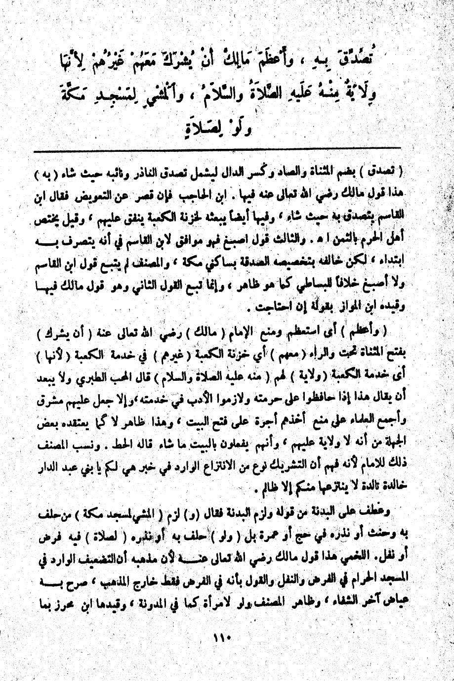فَقَالَ (وَ) لَزِمَ (الْمَشْيُ لِمَسْجِدِ مَكَّةَ) مَنْ حَلَفَ بِهِ وَحَنِثَ أَوْ نَذَرَهُ فِي حَجٍّ أَوْ عُمْرَةٍ بَلْ (وَلَوْ) حَلَفَ بِهِ أَوْ نَذَرَهُ (لِصَلَاةٍ) فِيهِ فَرْضٌ أَوْ نَفْلٌ. اللَّخْمِيُّ هَذَا قَوْلُ مَالِكٍ - رَضِيَ اللَّهُ تَعَالَى عَنْهُ -؛ لِأَنَّ مَذْهَبَهُ أَنَّ التَّضْعِيفَ الْوَارِدَ فِي الْمَسْجِدِ الْحَرَامِ فِي الْفَرْضِ وَالنَّفَلِ وَالْقَوْلُ بِأَنَّهُ فِي الْفَرْضِ فَقَطْ خَارِجُ الْمَذْهَبِ، صَرَّحَ بِهِ عِيَاضٌ آخِرَ الشِّفَاءِ، وَظَاهِرُ الْمُصَنِّفِ وَلَوْ لِامْرَأَةٍ كَمَا فِي الْمُدَوَّنَةِ، وَقَيَّدَهَا ابْنُ مُحْرِزٍ بِمَا