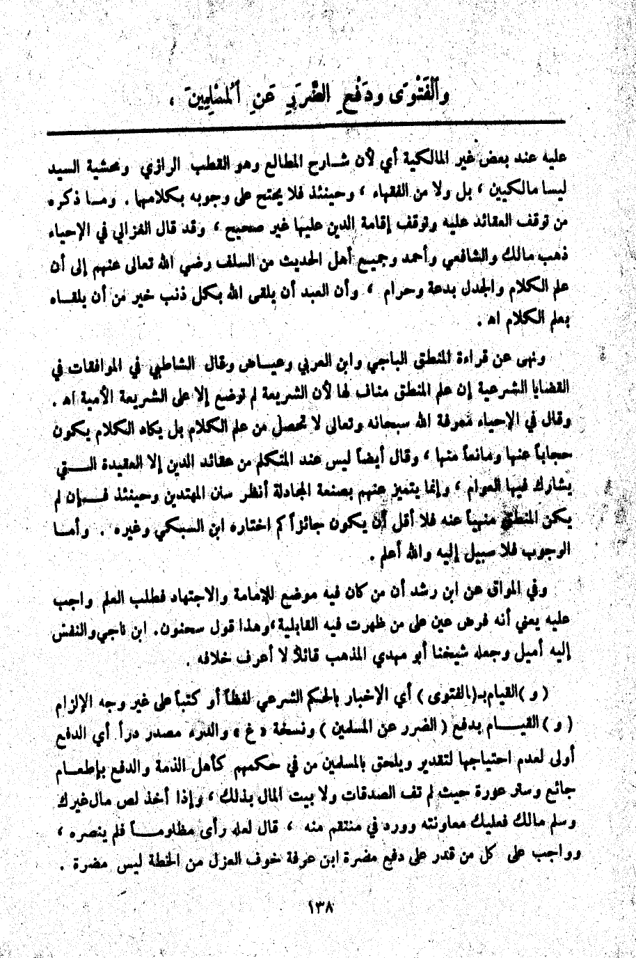 وَالْفَتْوَى وَدَفْعِ الضَّرَرِ عَنْ الْمُسْلِمِينَ،