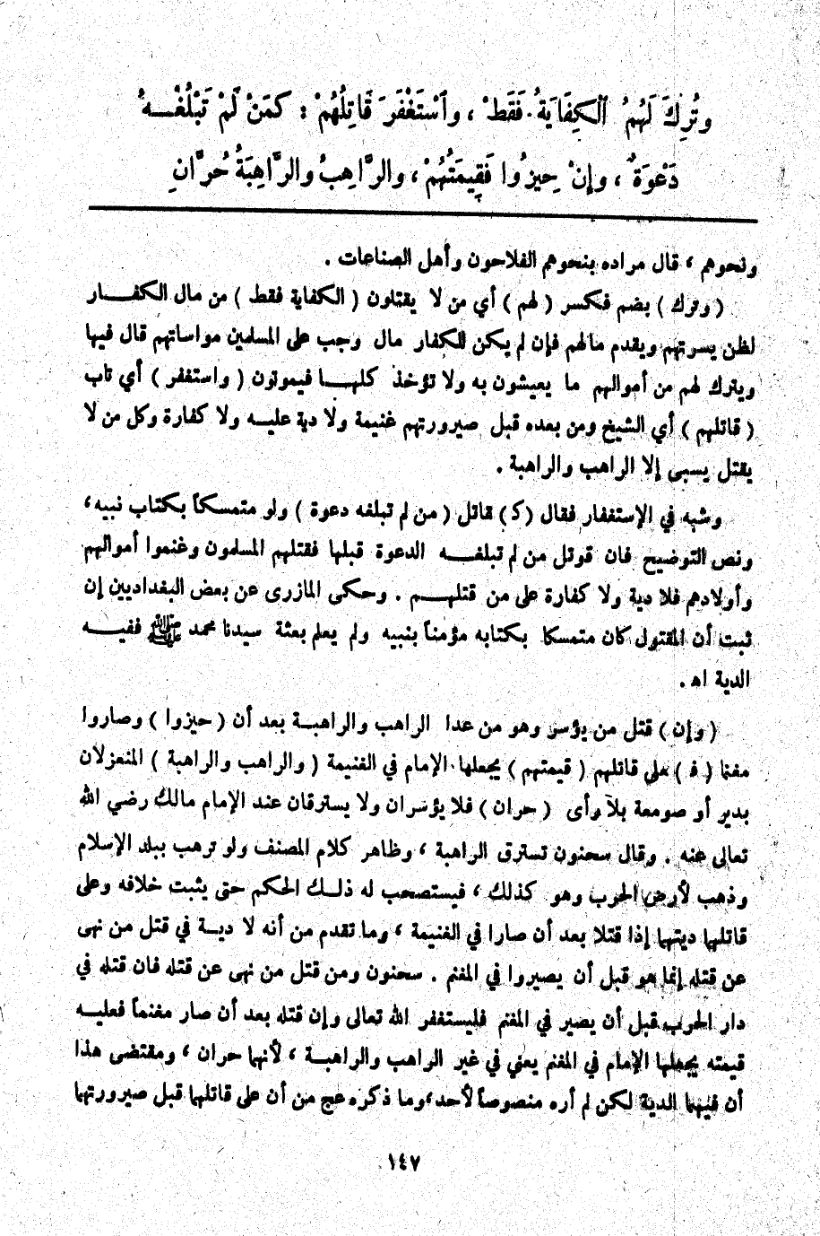 وَشَبَّهَ فِي الِاسْتِغْفَارِ فَقَالَ (كَ) قَاتِلِ (مَنْ لَمْ تَبْلُغْهُ دَعْوَةٌ) وَلَوْ مُتَمَسِّكًا بِكِتَابِ نَبِيِّهِ وَنَصُّ التَّوْضِيحِ فَإِنْ قُوتِلَ مَنْ لَمْ تَبْلُغْهُ الدَّعْوَةُ قَبْلَهَا فَقَتَلَهُمْ الْمُسْلِمُونَ وَغَنِمُوا أَمْوَالَهُمْ وَأَوْلَادَهُمْ فَلَا دِيَةَ، وَلَا كَفَّارَةَ عَلَى مَنْ قَتَلَهُمْ. وَحَكَى الْمَازِرِيُّ عَنْ بَعْضِ الْبَغْدَادِيِّينَ إنْ ثَبَتَ أَنَّ الْمَقْتُولَ كَانَ مُتَمَسِّكًا بِكِتَابِهِ مُؤْمِنًا بِنَبِيِّهِ وَلَمْ يَعْلَمْ بَعْثَةَ سَيِّدِنَا مُحَمَّدٍ - صَلَّى اللَّهُ عَلَيْهِ وَسَلَّمَ - فَفِيهِ الدِّيَةُ اهـ.