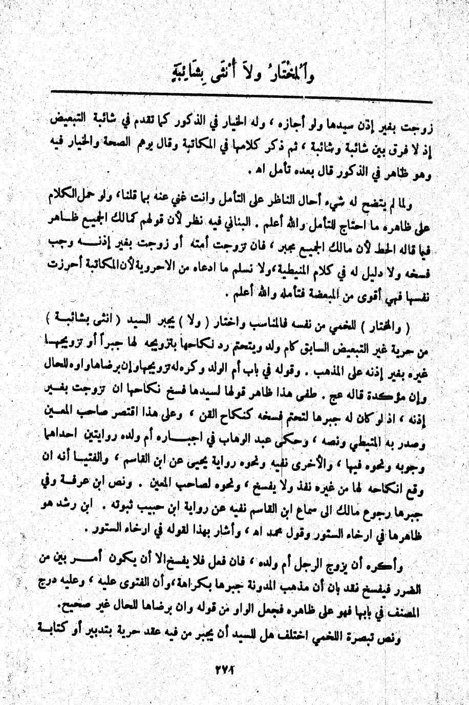 (وَالْمُخْتَارُ) لِلَّخْمِيِّ مِنْ نَفْسِهِ فَالْمُنَاسِبُ وَاخْتَارَ (وَلَا) يُجْبِرُ السَّيِّدُ (أُنْثَى بِشَائِبَةِ) مِنْ حُرِّيَّةٍ غَيْرِ التَّبْعِيضِ السَّابِقِ كَأُمِّ وَلَدٍ وَيَتَحَتَّمُ رَدُّ نِكَاحِهَا بِتَزْوِيجِهِ لَهَا جَبْرًا أَوْ تَزْوِيجِهَا غَيْرَهُ بِغَيْرِ إذْنِهِ عَلَى الْمَذْهَبِ. وَقَوْلُهُ فِي بَابِ أُمِّ الْوَلَدِ وَكُرِهَ لَهُ تَزْوِيجُهَا وَإِنْ بِرِضَاهَا وَاوُهُ لِلْحَالِ وَإِنْ مُؤَكِّدَةٌ قَالَهُ عج. طفي هَذَا ظَاهِرُ قَوْلِهَا لِسَيِّدِهَا فَسْخُ نِكَاحِهَا إنْ تَزَوَّجَتْ بِغَيْرِ إذْنِهِ، إذْ لَوْ كَانَ لَهُ جَبْرُهَا لَتَحَتَّمَ فَسْخُهُ كَنِكَاحِ الْقِنِّ، وَعَلَى هَذَا اقْتَصَرَ صَاحِبُ الْمُعِينِ وَصَدَّرَ بِهِ الْمُتَيْطِيُّ وَنَصُّهُ، وَحَكَى عَبْدُ الْوَهَّابِ فِي إجْبَارِهِ أُمَّ وَلَدِهِ رِوَايَتَيْنِ إحْدَاهُمَا وُجُوبُهُ وَنَحْوُهُ فِيهَا، وَالْأُخْرَى نَفْيُهُ وَنَحْوُهُ رِوَايَةُ يَحْيَى عَنْ ابْنِ الْقَاسِمِ وَالْفُتْيَا أَنَّهُ إنْ وَقَعَ إنْكَاحُهُ لَهَا مِنْ غَيْرِهِ نَفَذَ وَلَا يُفْسَخُ، وَنَحْوُهُ لِصَاحِبِ الْمُعِينِ. وَنَصُّ ابْنِ عَرَفَةَ وَفِي جَبْرِهَا رُجُوعُ مَالِكٍ إلَى سَمَاعِ ابْنِ الْقَاسِمِ نَفْيُهُ عَنْ رِوَايَةِ ابْنِ حَبِيبٍ ثُبُوتُهُ. ابْنُ رُشْدٍ هُوَ ظَاهِرُهَا فِي إرْخَاءِ السُّتُورِ وَقَوْلِ مُحَمَّدٍ. اهـ. وَأَشَارَ بِهَذَا لِقَوْلِهِ فِي إرْخَاءِ السُّتُورِ. وَأَكْرَهُ أَنْ يُزَوِّجَ الرَّجُلُ أُمَّ وَلَدِهِ، فَإِنْ فَعَلَ فَلَا يَفْسَخُ إلَّا أَنْ يَكُونَ أَمْرٌ بَيِّنٌ مِنْ الضَّرَرِ فَيَفْسَخُ فَقَدْ بَانَ أَنَّ مَذْهَبَ الْمُدَوَّنَةِ جَبْرُهَا بِكَرَاهَةٍ، وَأَنَّ الْفَتْوَى عَلَيْهِ، وَعَلَيْهِ دَرَجَ الْمُصَنِّفُ فِي بَابِهَا فَهُوَ عَلَى ظَاهِرِهِ فَجَعْلُ الْوَاوِ مِنْ قَوْلِهِ وَإِنْ بِرِضَاهَا لِلْحَالِ غَيْرُ صَحِيحٍ.
