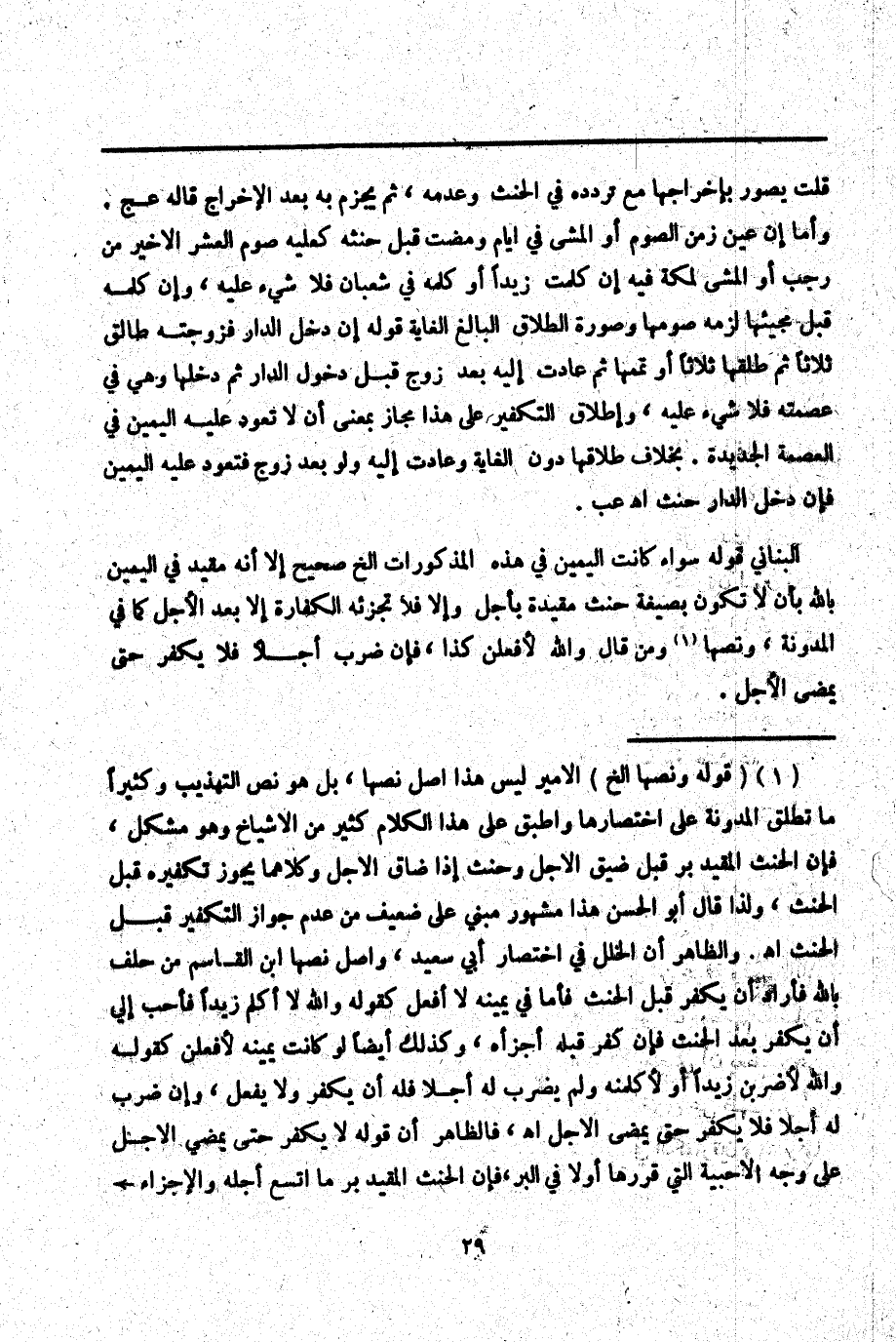 الْبُنَانِيُّ قَوْلُهُ سَوَاءٌ كَانَتْ الْيَمِينُ فِي هَذِهِ الْمَذْكُورَاتِ إلَخْ صَحِيحٌ إلَّا أَنَّهُ مُقَيَّدٌ فِي الْيَمِينِ بِاَللَّهِ بِأَنْ لَا تَكُونَ بِصِيغَةِ حِنْثٍ مُقَيَّدَةٍ بِأَجَلٍ وَإِلَّا فَلَا تُجْزِئُهُ الْكَفَّارَةُ إلَّا بَعْدَ الْأَجَلِ كَمَا فِي الْمُدَوَّنَةِ، وَنَصُّهَا وَمَنْ قَالَ وَاَللَّهِ لَأَفْعَلَنَّ كَذَا، فَإِنْ ضَرَبَ أَجَلًا فَلَا يُكَفِّرُ حَتَّى يَمْضِيَ الْأَجَلُ.