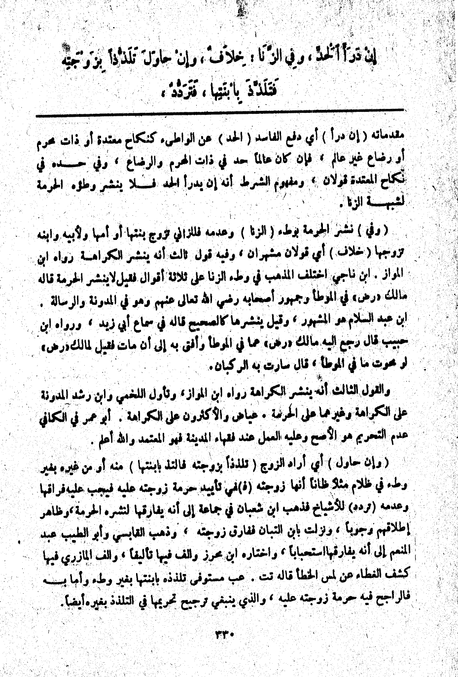 (وَفِي) نَشْرِ الْحُرْمَةِ بِوَطْءِ (الزِّنَا) وَعَدَمِهِ فَلِلزَّانِي تَزَوُّجُ بِنْتِهَا أَوْ أُمِّهَا وَلِأَبِيهِ وَابْنِهِ تَزَوُّجُهَا (خِلَافٌ) أَيْ قَوْلَانِ مُشْهَرَانِ، وَفِيهِ قَوْلٌ ثَالِثٌ أَنَّهُ يَنْشُرُ الْكَرَاهَةَ رَوَاهُ ابْنُ الْمَوَّازِ. ابْنُ نَاجِي اخْتَلَفَ الْمَذْهَبُ فِي وَطْءِ الزِّنَا عَلَى ثَلَاثَةِ أَقْوَالٍ فَقِيلَ لَا يَنْشُرُ الْحُرْمَةَ قَالَهُ مَالِكٌ - رَضِيَ اللَّهُ عَنْهُ - فِي الْمُوَطَّأِ وَجُمْهُورُ أَصْحَابِهِ - رَضِيَ اللَّهُ تَعَالَى عَنْهُمْ - وَهُوَ فِي الْمُدَوَّنَةِ وَالرِّسَالَةِ. ابْنُ عَبْدِ السَّلَامِ هُوَ الْمَشْهُورُ، وَقِيلَ يَنْشُرُهَا كَالصَّحِيحِ قَالَهُ فِي سَمَاعِ أَبِي زَيْدٍ.، وَرَوَاهُ ابْنُ حَبِيبٍ قَالَ رَجَعَ إلَيْهِ مَالِكٌ " - رَضِيَ اللَّهُ عَنْهُ - " عَمَّا فِي الْمُوَطَّإِ وَأَفْتَى بِهِ إلَى أَنْ مَاتَ فَقِيلَ لِمَالِكٍ " - رَضِيَ اللَّهُ عَنْهُ - " لَوْ مَحَوْت مَا فِي الْمُوَطَّإِ، قَالَ سَارَتْ بِهِ الرُّكْبَانُ.