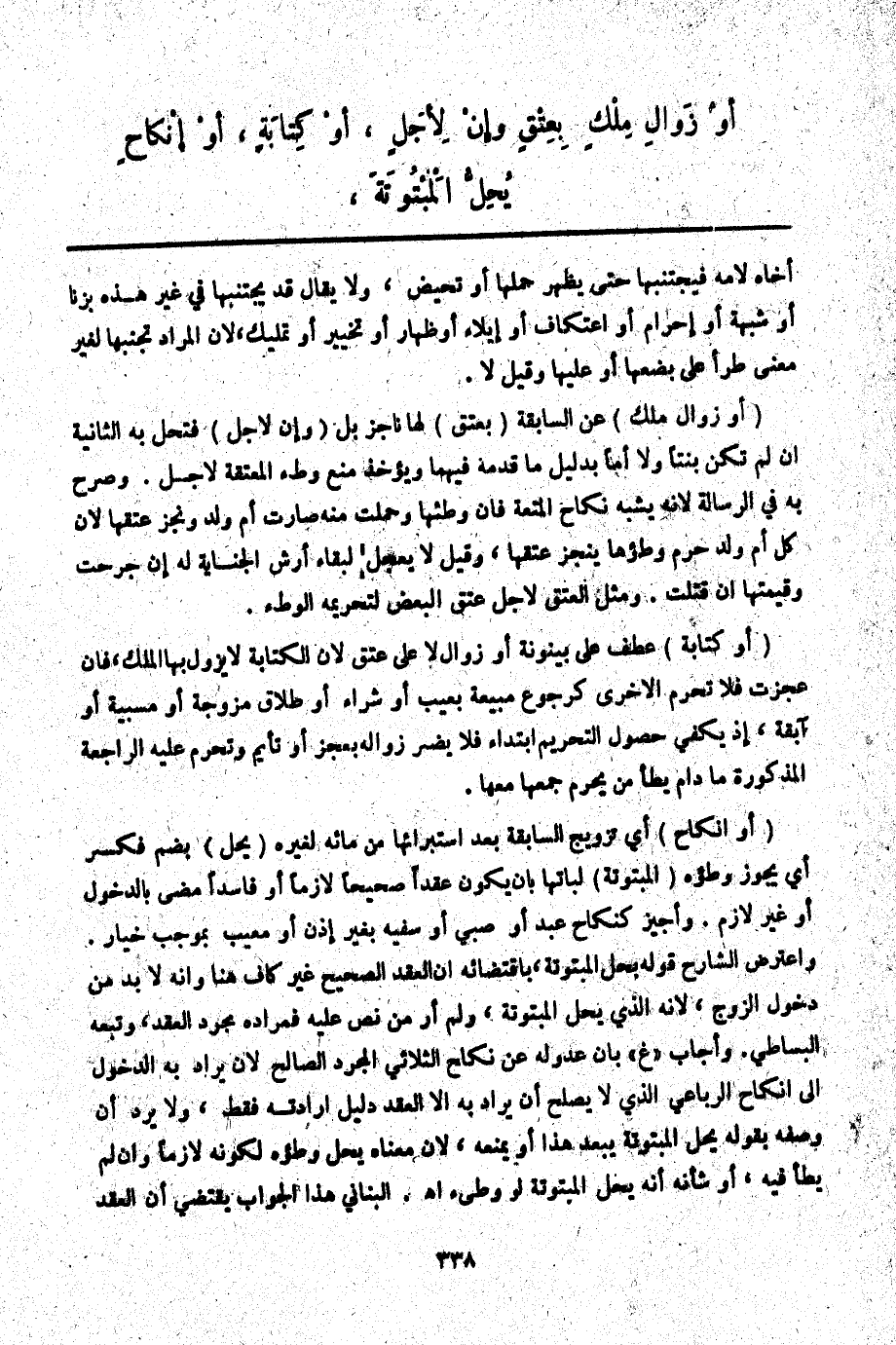 أَوْ زَوَالِ مِلْكٍ بِعِتْقٍ وَإِنْ لِأَجَلٍ، أَوْ كِتَابَةٍ، أَوْ إنْكَاحٍ يُحِلُّ الْمَبْتُوتَةَ،