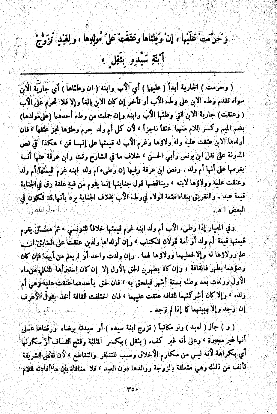 وَلِعَبْدٍ تَزَوُّجُ ابْنَةِ سَيِّدِهِ بِثِقَلٍ،