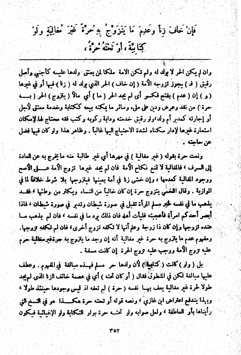 بَلْ (وَلَوْ) كَانَتْ (كِتَابِيَّةً) لِأَنَّ وَلَدَهَا حُرٌّ مُسْلِمٌ فَهَذِهِ مُبَالَغَةٌ فِي الْمَفْهُومِ. وَعُطِفَ عَلَيْهَا مُبَالَغَةً لَكِنْ فِي الْمَنْطُوقِ فَقَالَ (أَوْ كَانَ تَحْتَهُ) أَيْ فِي عِصْمَةِ خَائِفِ الزِّنَا الَّذِي لَمْ يَجِدْ طَوْلًا لِحُرَّةٍ غَيْرِ مُغَالِيَةٍ يَعِفُّ بِهَا نَفْسَهُ (حُرَّةٌ) لَمْ تُعِفَّهُ إذْ لَيْسَ وُجُودُهَا حِينَئِذٍ طَوْلًا، وَبِهَذَا يَنْدَفِعُ اعْتِرَاضُ ابْنِ غَازِيٍّ، وَنَصُّهُ قَوْلُهُ أَوْ تَحْتَهُ حُرَّةٌ هَكَذَا وَهُوَ فِي النُّسَخِ الَّتِي رَأَيْنَاهَا بِأَوْ الْعَاطِفَةِ، وَلَعَلَّ صَوَابَهُ وَلَوْ تَحْتَهُ حُرَّةٌ بِوَاوِ النِّكَايَةِ وَلَوْ الْإِغْيَائِيَّةِ فَيَكُونُ