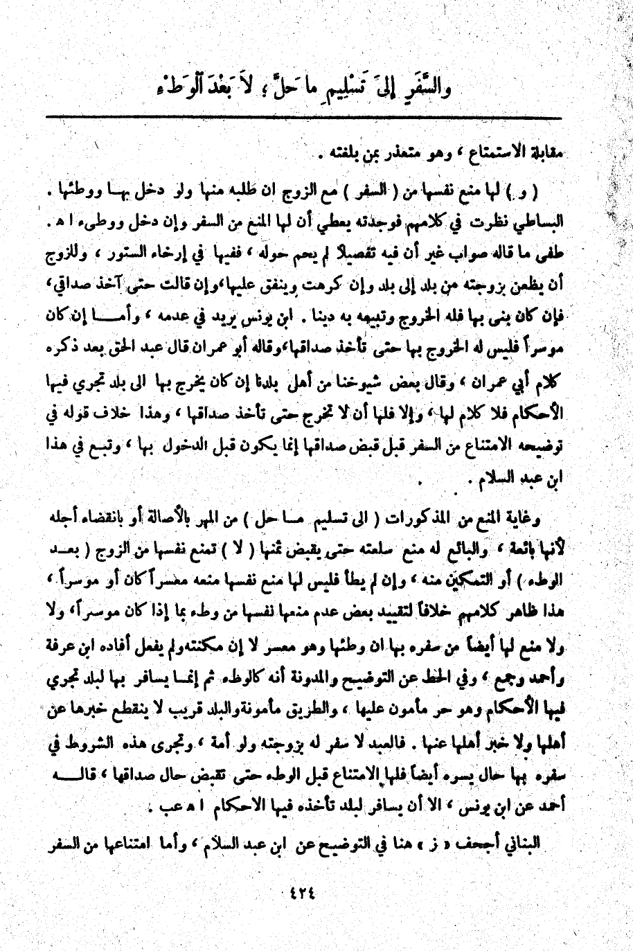 الْبُنَانِيُّ أَجْحَفَ " ز " هُنَا فِي التَّوْضِيحِ عَنْ ابْنِ عَبْدِ السَّلَامِ، وَأَمَّا امْتِنَاعُهَا مِنْ السَّفَرِ