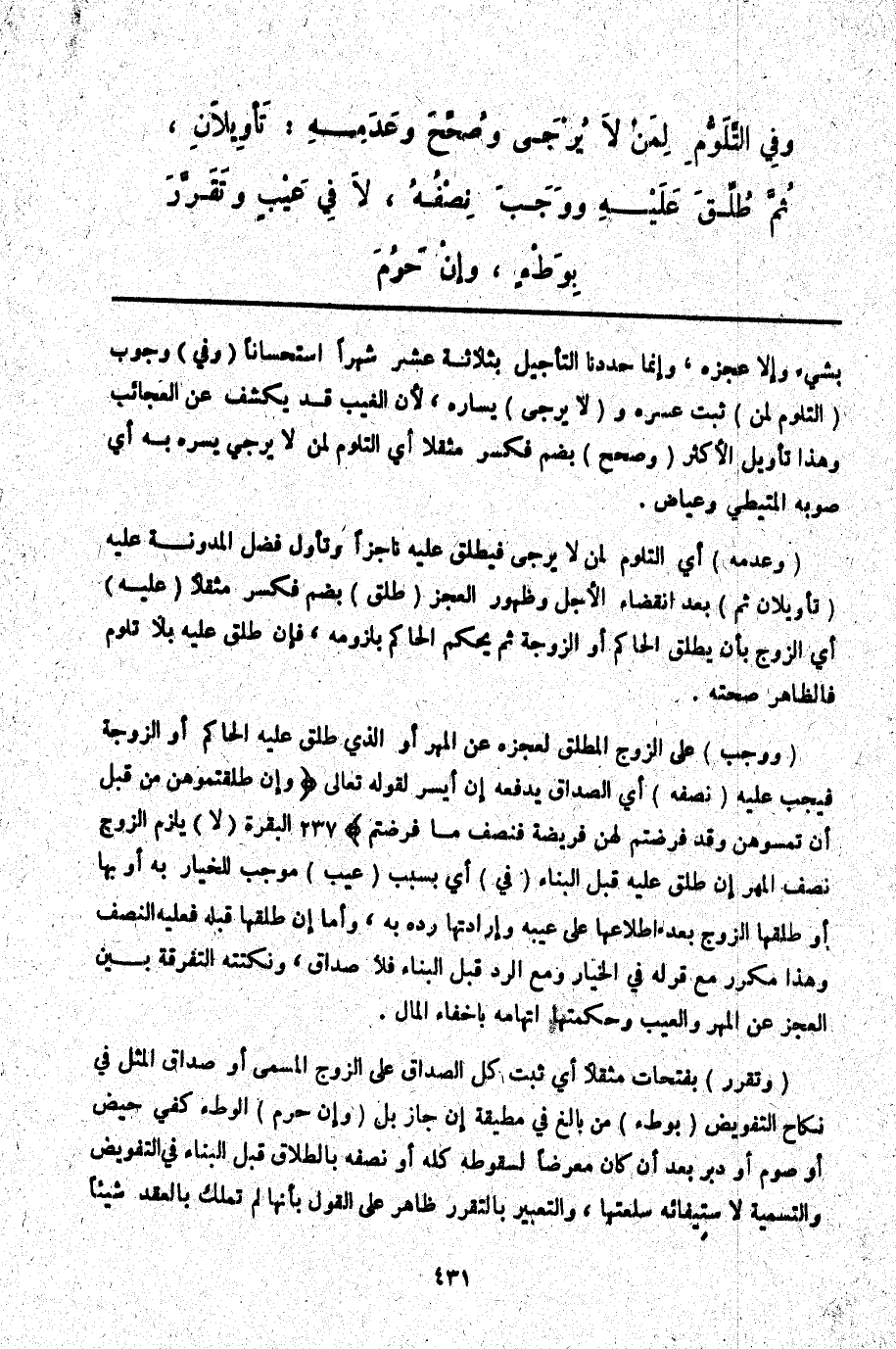 (وَعَدَمِهِ) أَيْ التَّلَوُّمِ لِمَنْ لَا يُرْجَى فَيُطَلَّقُ عَلَيْهِ نَاجِزًا وَتَأَوَّلَ فَضْلٌ الْمُدَوَّنَةَ عَلَيْهِ (تَأْوِيلَانِ ثُمَّ) بَعْدَ انْقِضَاءِ الْأَجَلِ وَظُهُورِ الْعَجْزِ (طُلِّقَ) بِضَمٍّ فَكَسْرٍ مُثَقَّلًا (عَلَيْهِ) أَيْ الزَّوْجِ بِأَنْ يُطَلِّقَ الْحَاكِمُ أَوْ الزَّوْجَةُ ثُمَّ يَحْكُمَ الْحَاكِمُ بِلُزُومِهِ، فَإِنْ طَلَّقَ عَلَيْهِ بِلَا تَلَوُّمٍ فَالظَّاهِرُ صِحَّتُهُ.