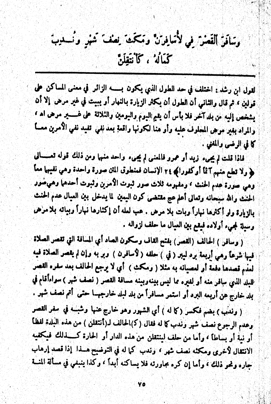 وَسَافَرَ الْقَصْرَ فِي لَأُسَافِرَنَّ وَمَكَثَ نِصْفَ شَهْرٍ وَنُدِبَ كَمَالُهُ، كَأَنْتَقِلَنَّ