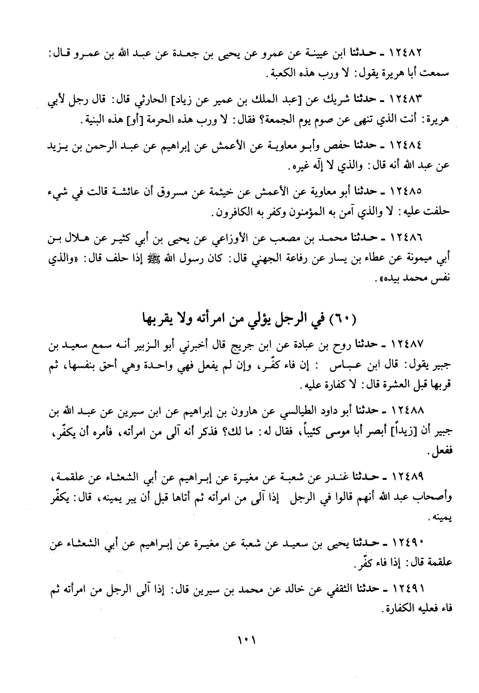 12490 - يَحْيَى بْنُ سَعِيدٍ، عَنْ شُعْبَةَ، عَنْ مُغِيرَةَ، عَنْ إِبْرَاهِيمَ، عَنْ أَبِي الشَّعْثَاءِ، عَنْ عَلْقَمَةَ، قَالَ: «§إِذَا فَاءَ كَفَّرَ»