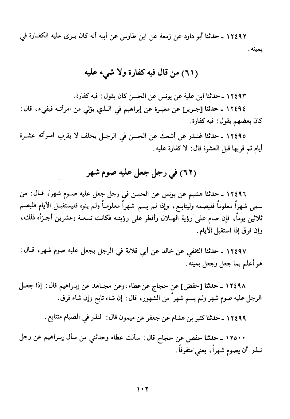 12493 - ابْنُ عُلَيَّةَ، عَنْ يُونُسَ، عَنِ الْحَسَنِ، كَانَ يَقُولُ: «§فِيهِ كَفَّارَةٌ»