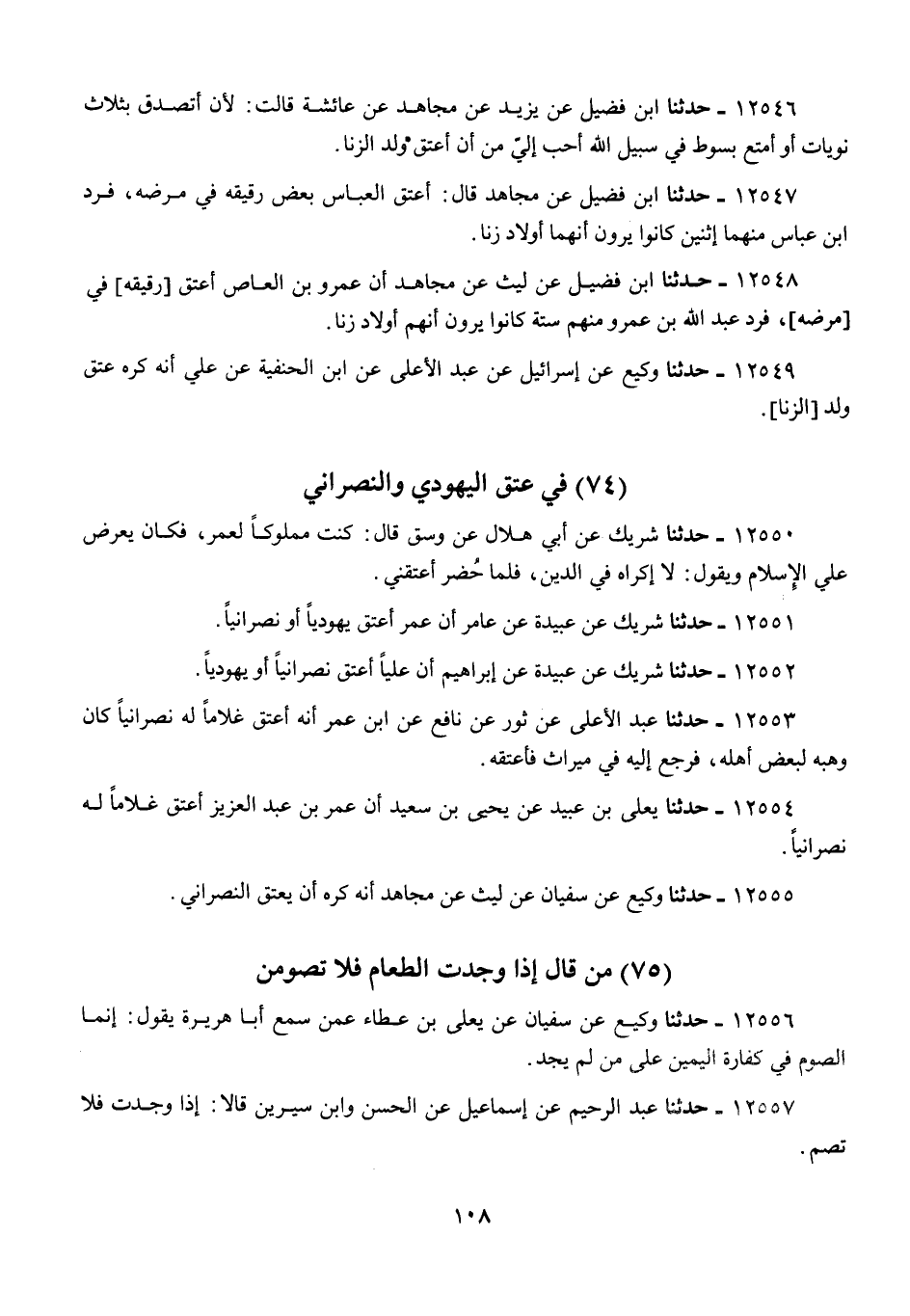 12552 - شَرِيكٌ، عَنْ عَبِيدَةَ، عَنْ إِبْرَاهِيمَ، أَنَّ عَلِيًّا: «§أَعْتَقَ نَصْرَانِيًّا، أَوْ يَهُودِيًّا،»