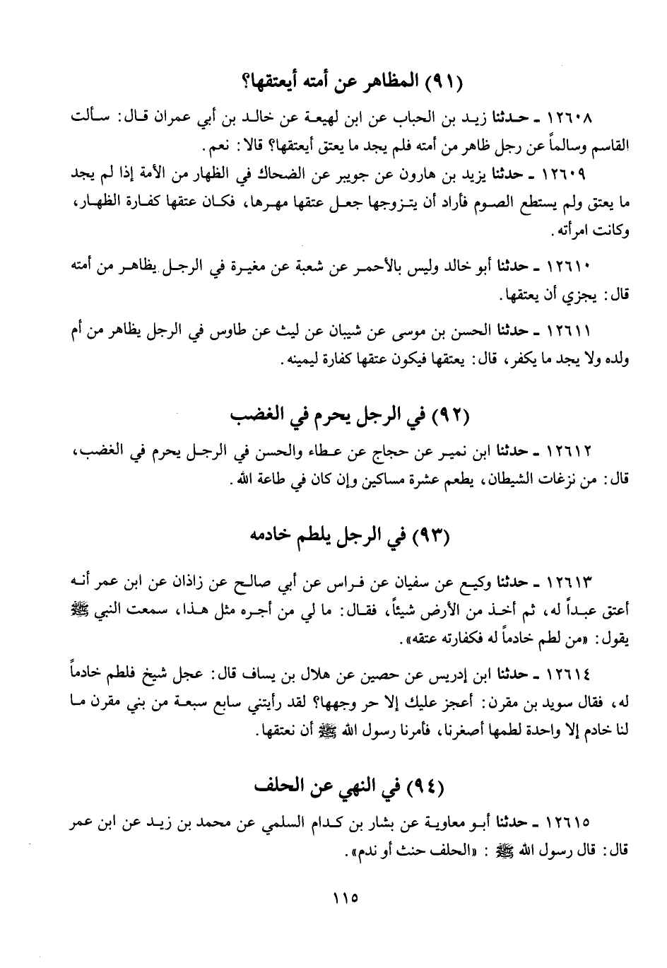12615 - أَبُو مُعَاوِيَةَ، عَنْ بَشَّارِ بْنِ كِدَامٍ السُّلَمِيِّ، عَنْ مُحَمَّدِ بْنِ زَيْدٍ، عَنِ ابْنِ عُمَرَ، قَالَ: قَالَ رَسُولُ اللَّهِ صَلَّى اللهُ عَلَيْهِ وَسَلَّمَ: «§الْحَلِفُ حِنْثٌ، أَوْ نَدَمٌ»