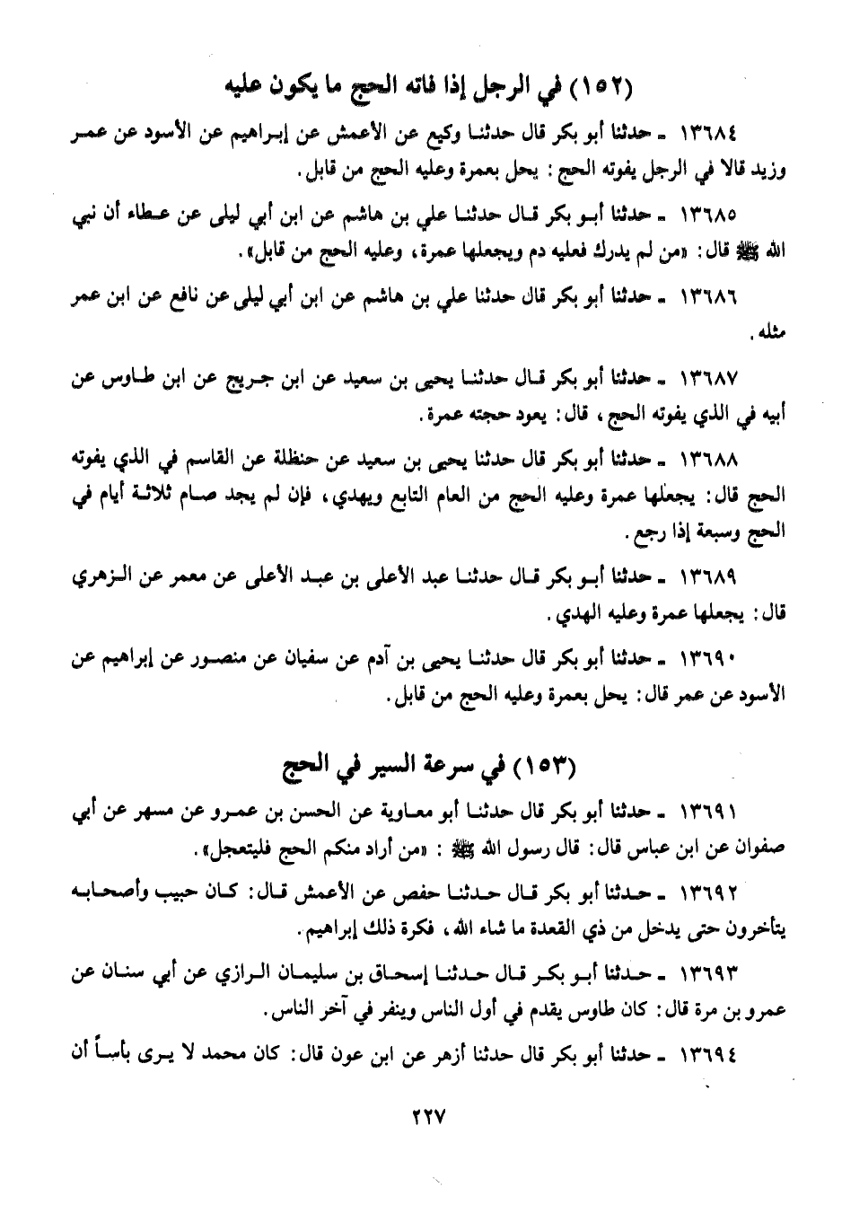 13684 - أَبُو بَكْرٍ قَالَ: حَدَّثَنَا وَكِيعٌ، عَنِ الْأَعْمَشِ، عَنْ إِبْرَاهِيمَ، عَنِ الْأَسْوَدِ، عَنْ عُمَرَ، وَزَيْدٍ، قَالَا فِي الرَّجُلِ يَفُوتُهُ الْحَجُّ: «§يُحِلُّ بِعُمْرَةٍ وَعَلَيْهِ الْحَجُّ مِنْ قَابِلٍ»