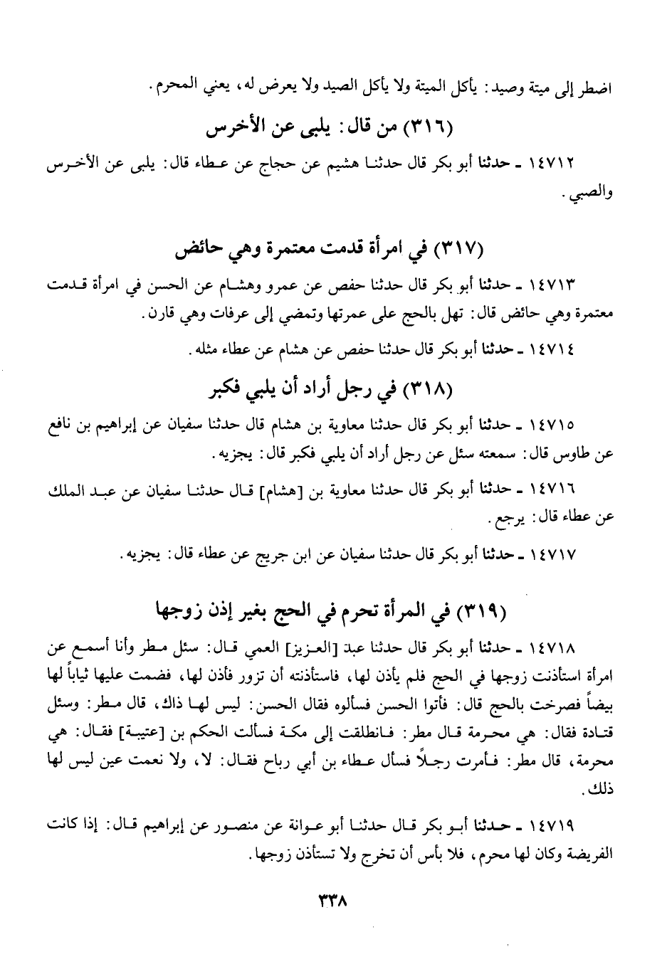 14714 - أَبُو بَكْرٍ قَالَ: حَدَّثَنَا حَفْصٌ، عَنْ هِشَامٍ، عَنْ عَطَاءٍ، مِثْلَهُ.