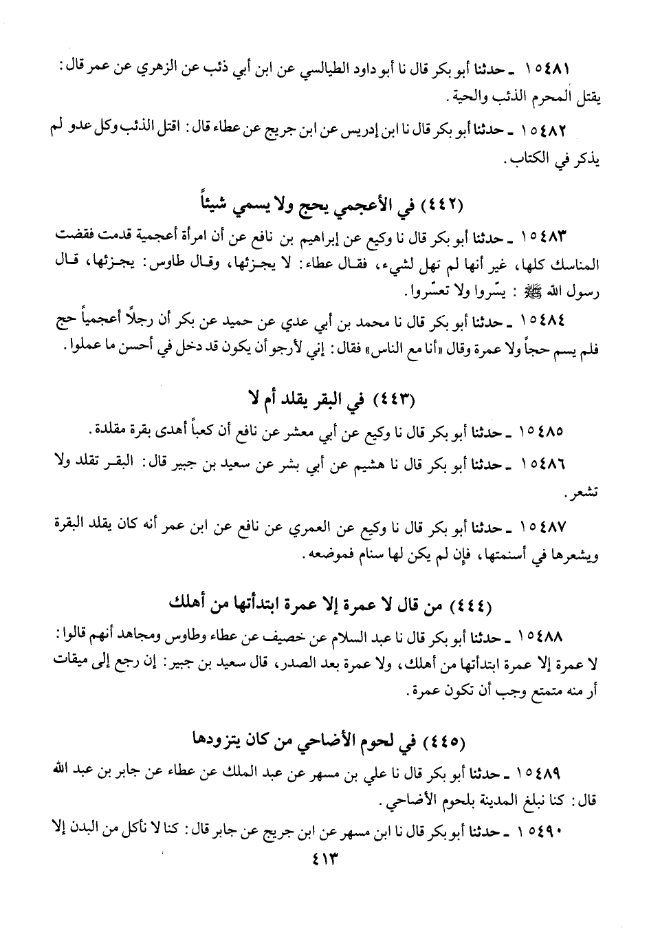 15486 - أَبُو بَكْرٍ قَالَ: نا هُشَيْمٌ، عَنْ أَبِي بِشْرٍ، عَنْ سَعِيدِ بْنِ جُبَيْرٍ قَالَ: «§الْبَقَرُ تُقَلَّدُ وَلَا تُشْعَرُ»
