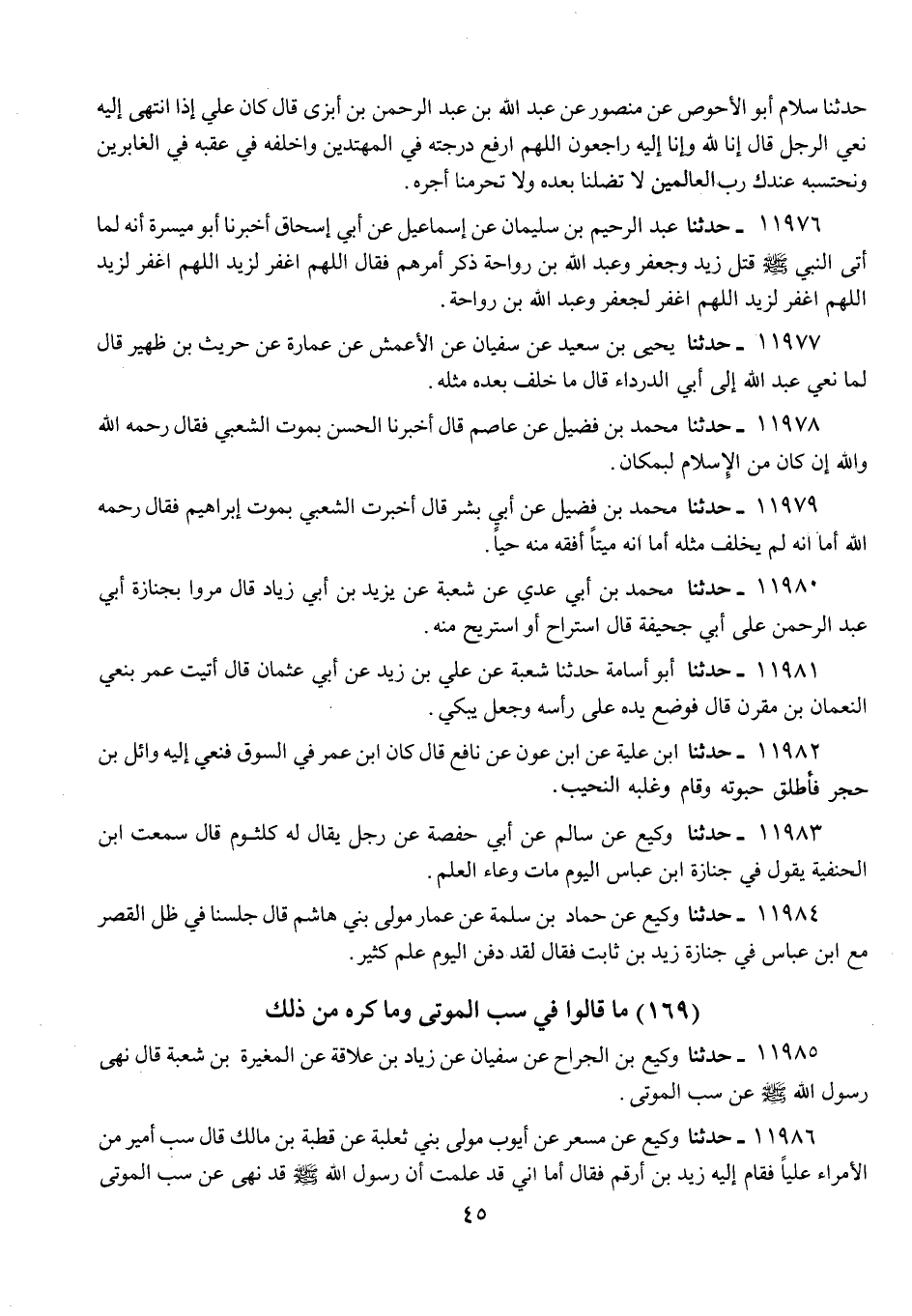 11985 - حَدَّثَنَا وَكِيعُ بْنُ الْجَرَّاحِ، عَنْ سُفْيَانَ، عَنْ زِيَادِ بْنِ عِلَاقَةَ، عَنِ الْمُغِيرَةِ بْنِ شُعْبَةَ، قَالَ: «§نَهَى رَسُولُ اللَّهِ صَلَّى اللهُ عَلَيْهِ وَسَلَّمَ عَنْ سَبِّ الْمَوْتَى»