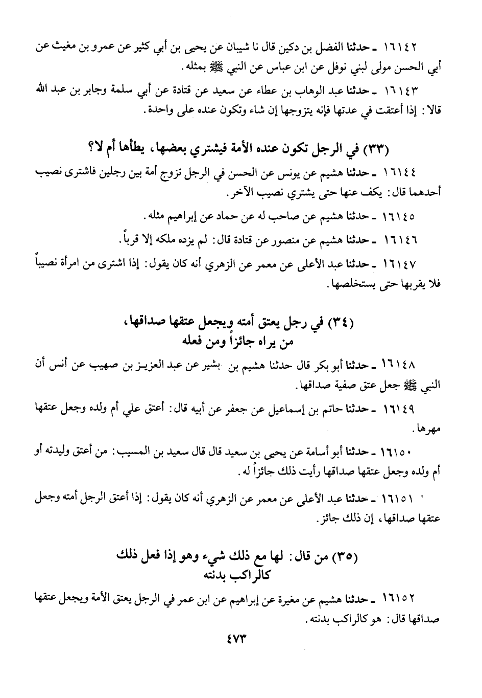 16153 - وَكِيعٌ، عَنْ سُفْيَانَ، عَنْ أَبِي إِسْحَاقَ، عَنْ أَبِي الْكَنُودِ، عَنْ عَبْدِ اللَّهِ، قَالَ: «§مَثَلُ الَّذِي يَعْتِقُ أَمَتَهُ وَيَتَزَوَّجُهَا مَثَلُ الرَّجُلِ يَرْكَبُ بَدَنَتَهُ»