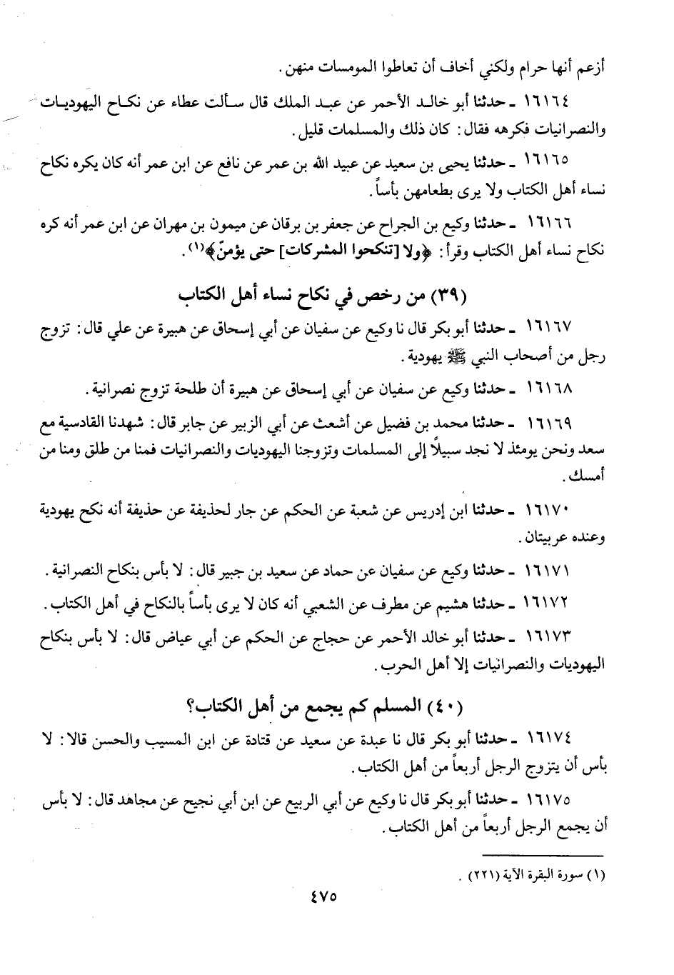 16168 - وَكِيعٌ، عَنْ سُفْيَانَ، عَنْ أَبِي إِسْحَاقَ، عَنْ هُبَيْرَةَ، أَنَّ طَلْحَةَ، «§تَزَوَّجَ نَصْرَانِيَّةً»