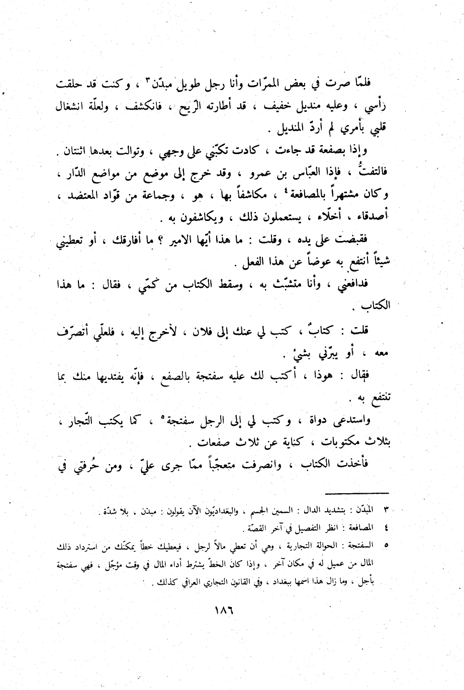 فَأخذ الْكتاب، وانصرفت مُتَعَجِّبا مِمَّا جرى عَليّ، وَمن حرفتي فِي