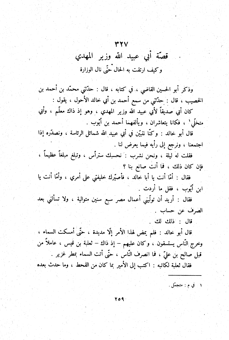 قصَّة أبي عبيد الله وَزِير الْمهْدي وَكَيف ارتقت بِهِ الْحَال حَتَّى نَالَ الوزارة