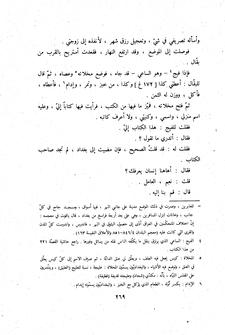 ثمَّ فتح مخلاته، فميز مَا فِيهَا من الْكتب، فَرَأَيْت فِيهَا كتابا إِلَيّ، وَعَلِيهِ اسْم منزلي واسمي وكنيتي، وَلَا أعرف كَاتبه.