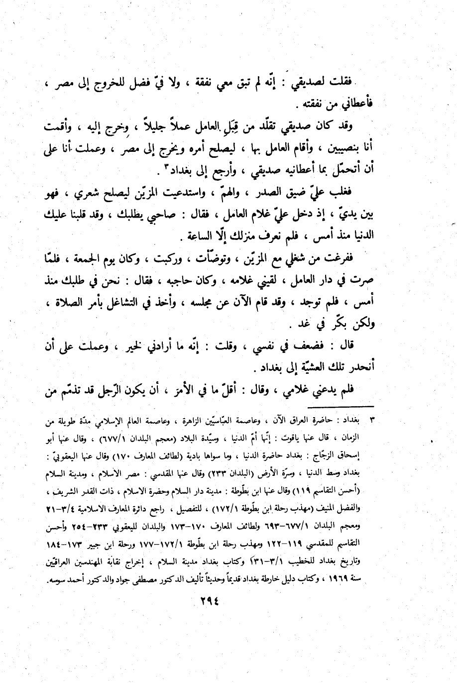 وَقد كَانَ صديقي تقلد من قبل الْعَامِل عملا جَلِيلًا، وَخرج إِلَيْهِ، وأقمت أَنا بنصيبين، وَأقَام الْعَامِل بهَا؛ ليصلح أمره وَيخرج إِلَى مصر، وعملت أَنا على أَن أتحمل بِمَا أعطانيه صديقي، وأرجع إِلَى بَغْدَاد.