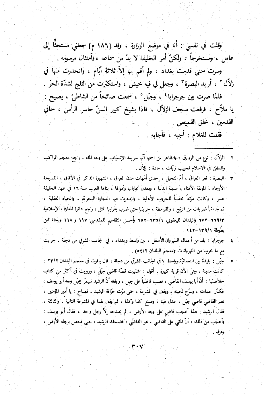 وَقلت فِي نَفسِي: أَنا فِي مَوضِع الوزارة، وَقد جعلني مستحثا إِلَى عَامل، ومستخرجا، وَلَكِن أَمر الْخَلِيفَة لَا بُد من سَمَاعه، وامتثال مرسومه.