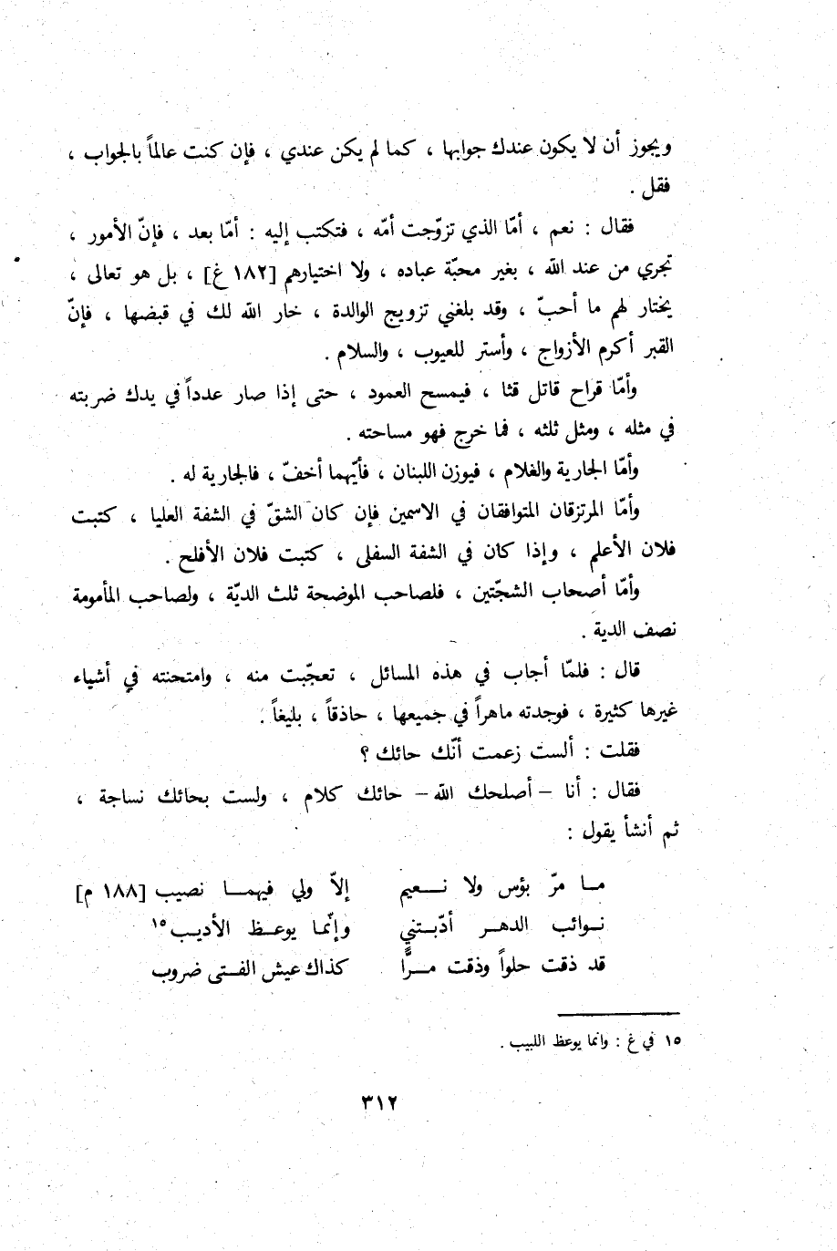 وَيجوز أَن لَا يكون عنْدك جوابها، كَمَا لم يكن عِنْدِي، فَإِن كنت عَالما بِالْجَوَابِ، فَقل.
