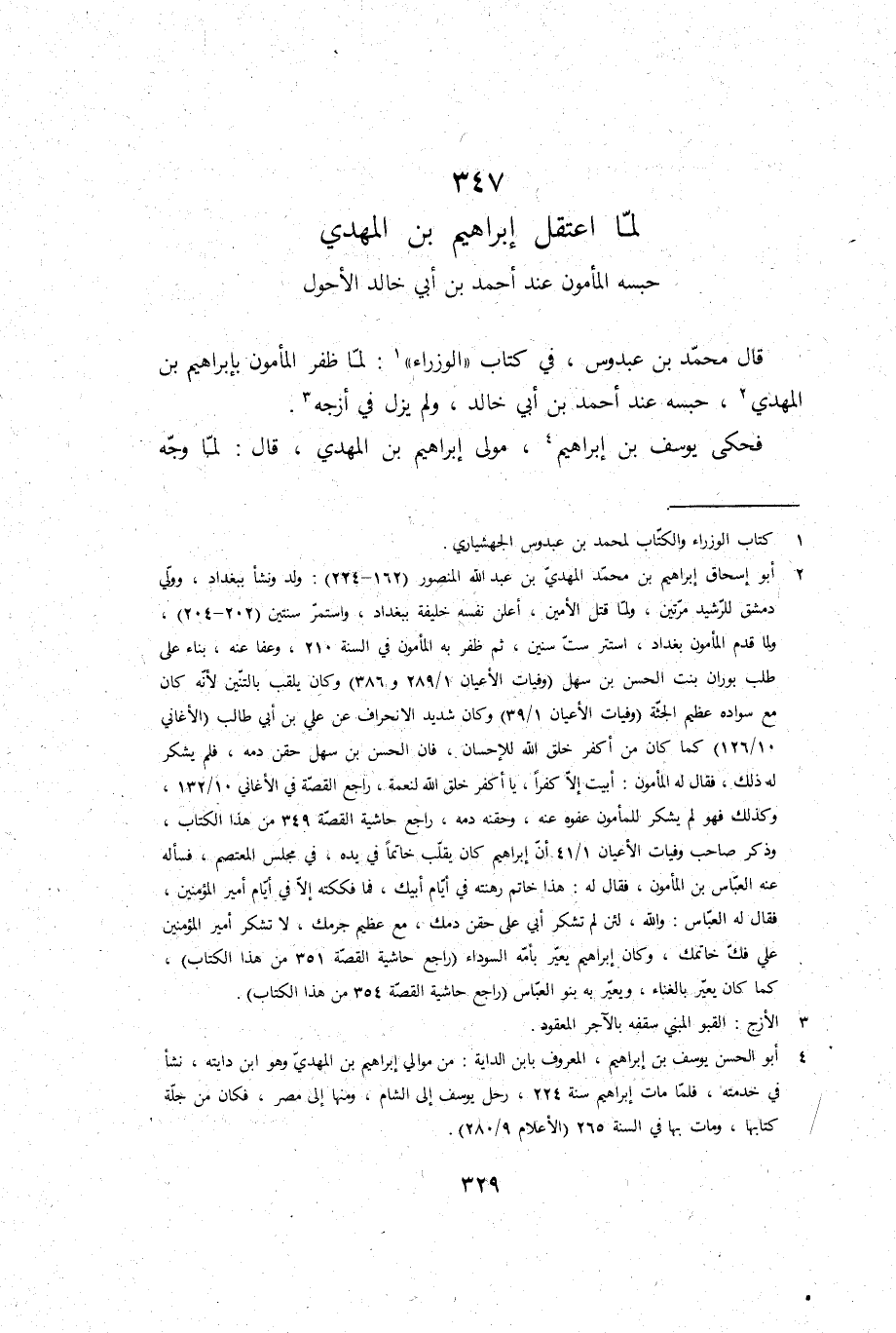 فَحكى يُوسُف بن إِبْرَاهِيم، مولى إِبْرَاهِيم بن الْمهْدي، قَالَ: لما وَجه