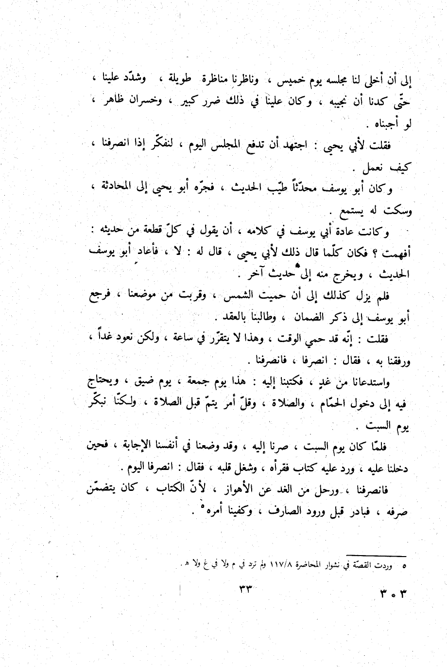 واستدعانا من غَد، فكتبنا إِلَيْهِ: هَذَا يَوْم جُمُعَة، يَوْم ضيق، وَيحْتَاج فِيهِ إِلَى دُخُول الْحمام، وَالصَّلَاة، وَقل أَمر يتم قبل الصَّلَاة، وَلَكنَّا نبكر يَوْم السبت.