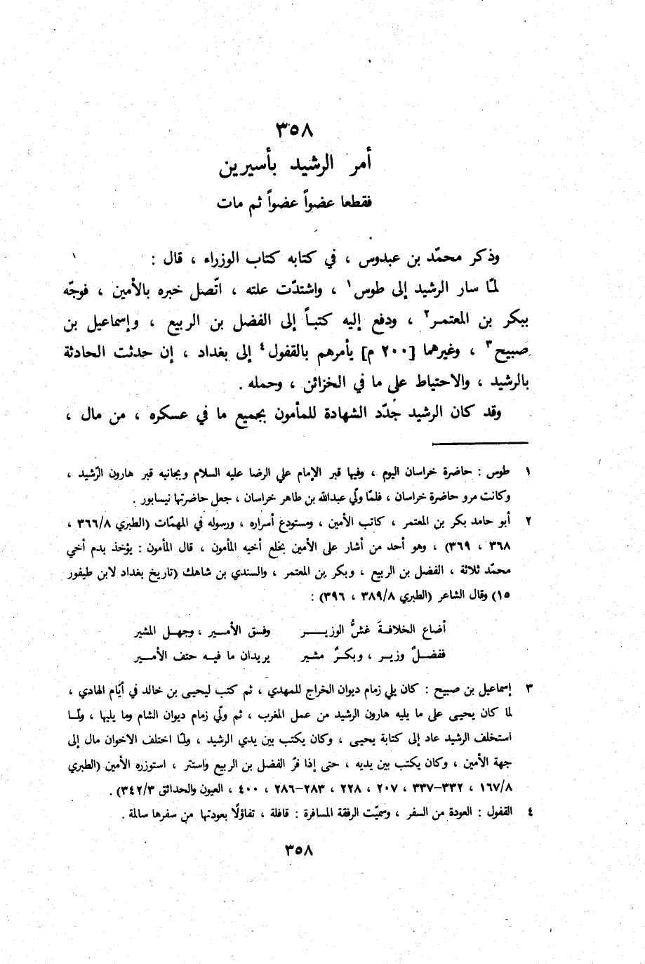 أَمر الرشيد بأسيرين فقطعا عضوا عضوا ثمَّ مَاتَ