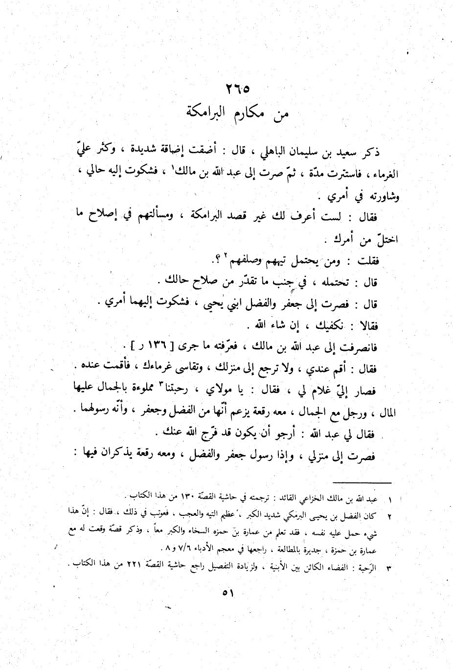 فَصَارَ إِلَيّ غُلَام لي، فَقَالَ: يَا مولَايَ، رحبتنا مَمْلُوءَة بالجمال عَلَيْهَا المَال، وَرجل مَعَ الْجمال، مَعَه رقْعَة يزْعم أَنَّهَا من الْفضل وجعفر، وَأَنه رسولهما.