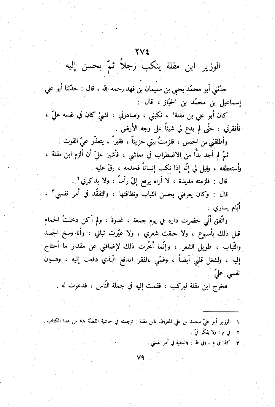 الْوَزير ابْن مقلة ينكب رجلا ثمَّ يحسن إِلَيْهِ