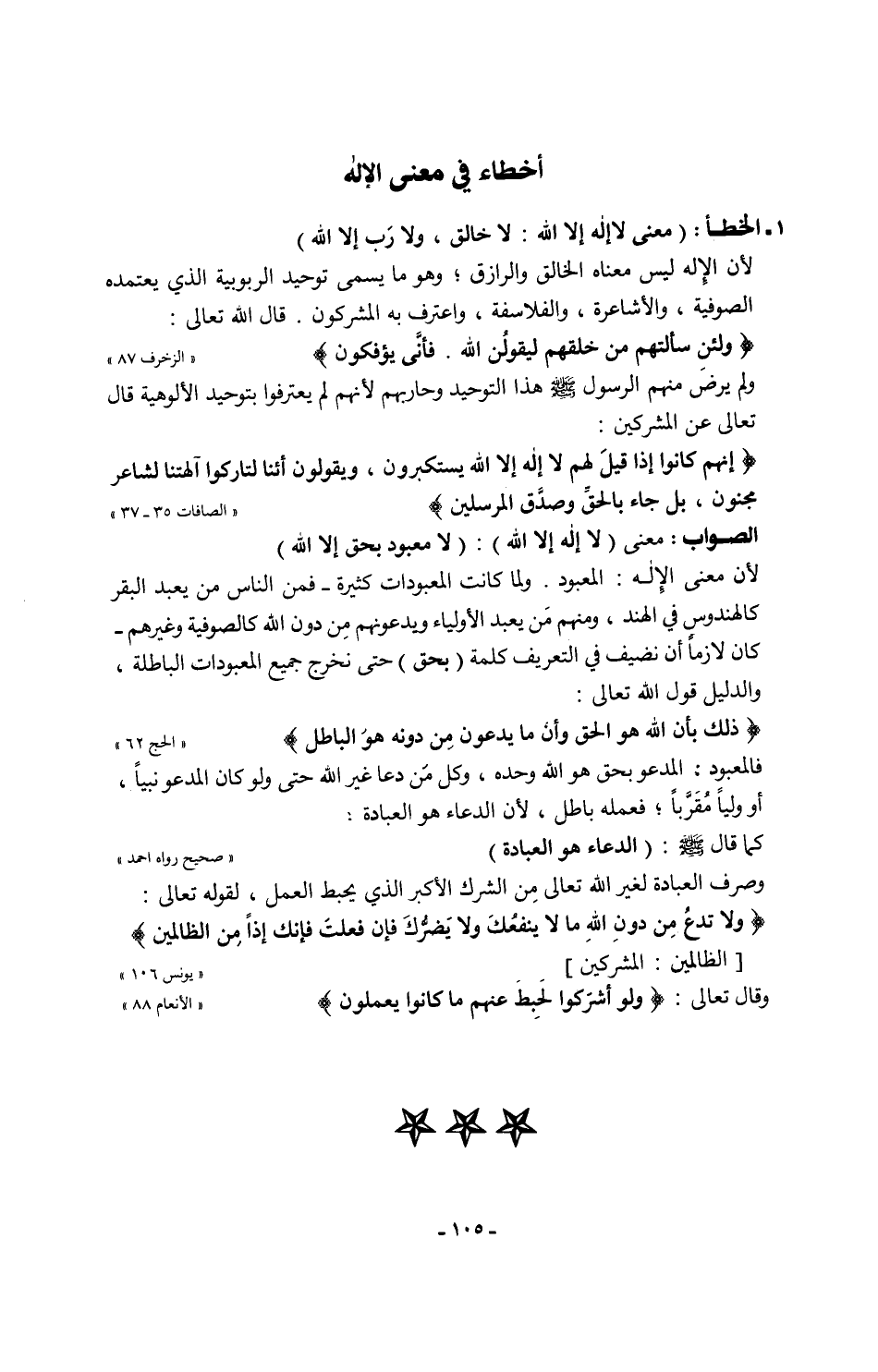1 - الخطأ: (معنى لا إله إلا الله: لا خالق، ولا رَب إلا الله)