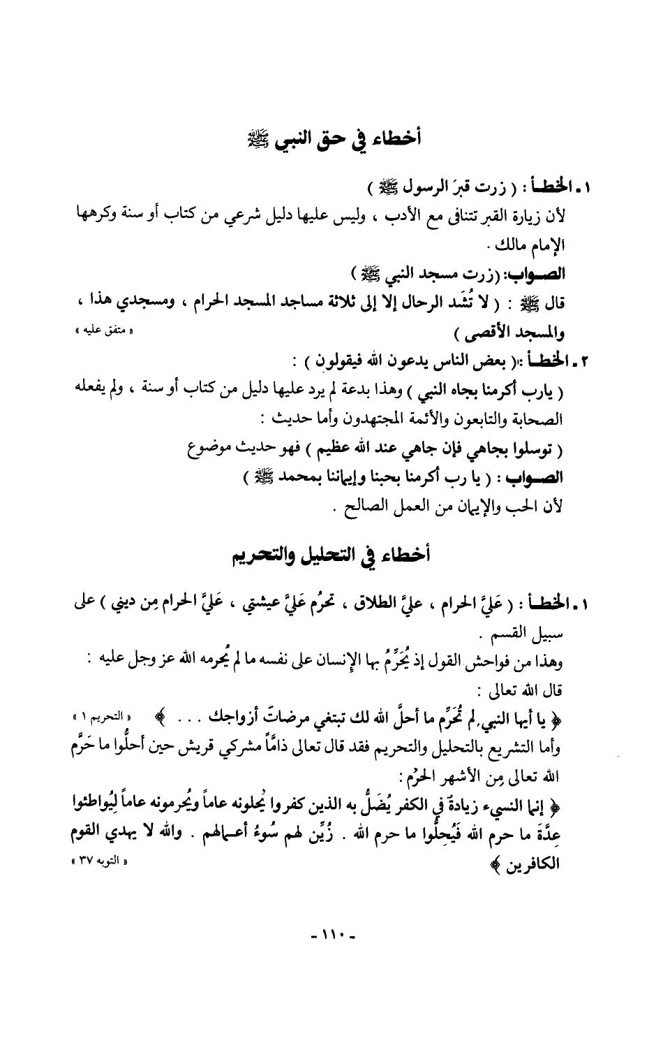 1 - الخطأ: (عَليَّ الحرام، عليَّ الطلاق، تحرُم عَليَّ عيشتي، عَليَّ الحرام مِن ديني) على سبيل القسم.