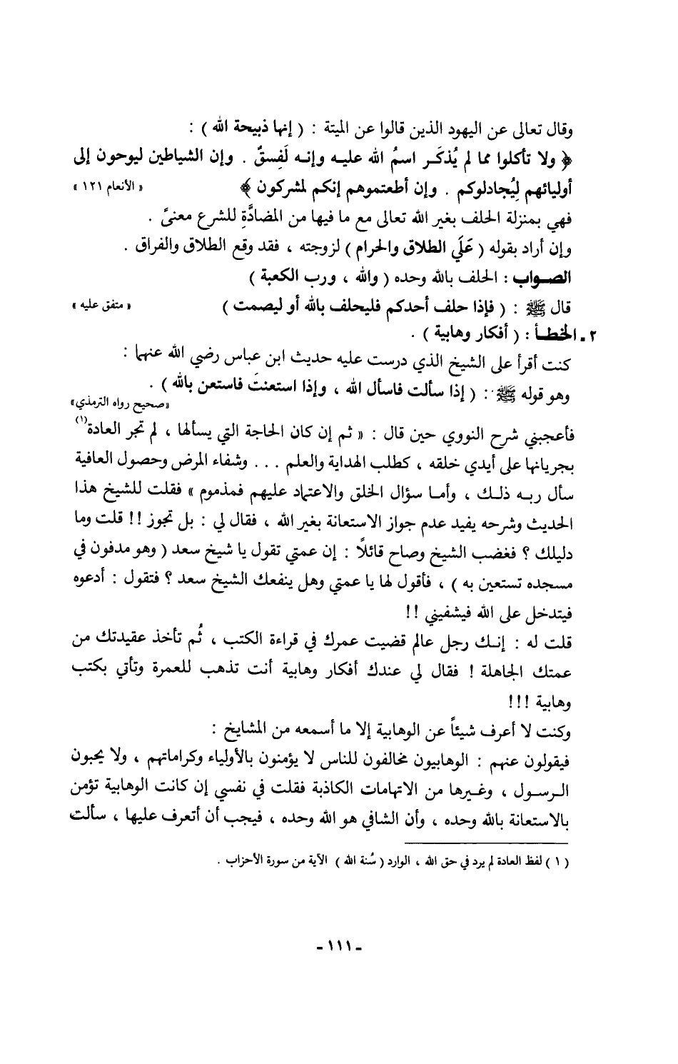 قلت له: إنك رجل عالم قضيت عمرك في قراءة الكتب، ثُم تأخذ عقيدتك من عمتك الجاهلة! فقال لي عندك أفكار وهابية أنت تذهب للعمرة وتأتي بكتب وهابية!!!