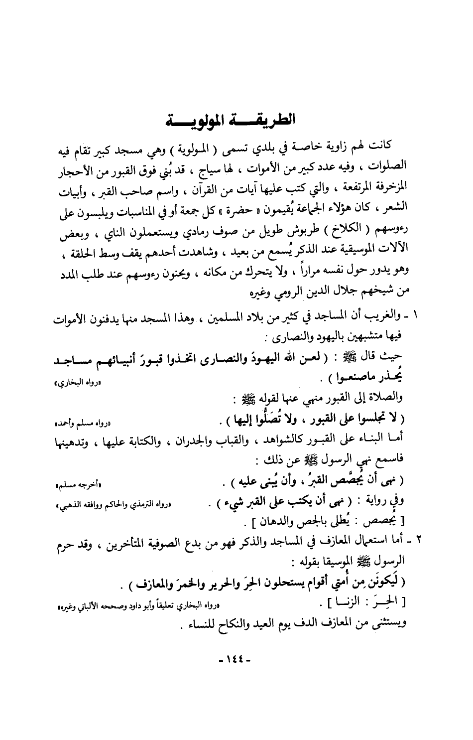 حيث قال - صلى الله عليه وسلم -: (لعن الله اليهود والنصارى اتخذوا قبورَ أنبيائهم مساجد يُحذر ما صنعوا). "رواه البخاري"