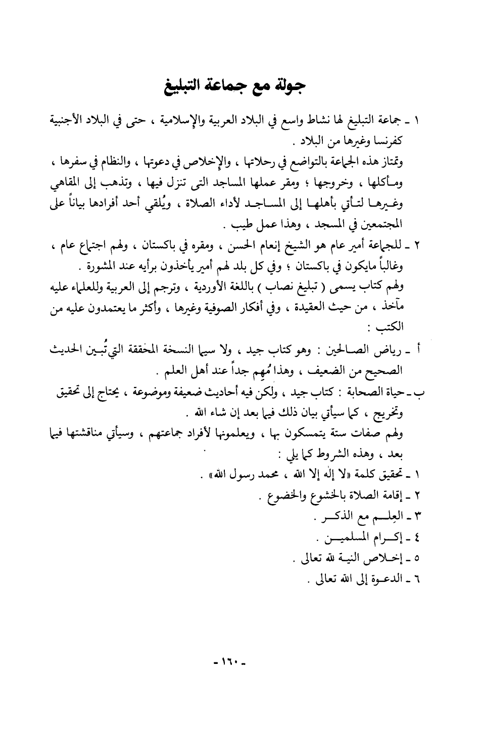 1 - جماعة التبليغ لها نشاط واسع في البلاد العربية والإِسلامية، حتى في البلاد الأجنبية كفرنسا وغيرها من البلاد.