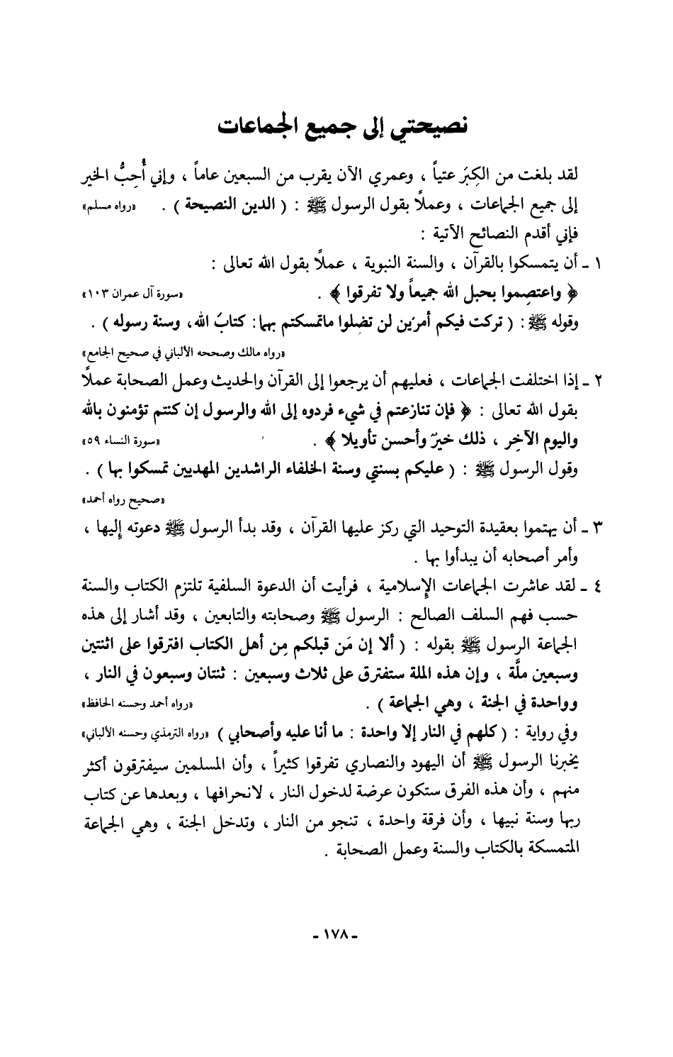 نصيحتي إلى جميع الجماعات