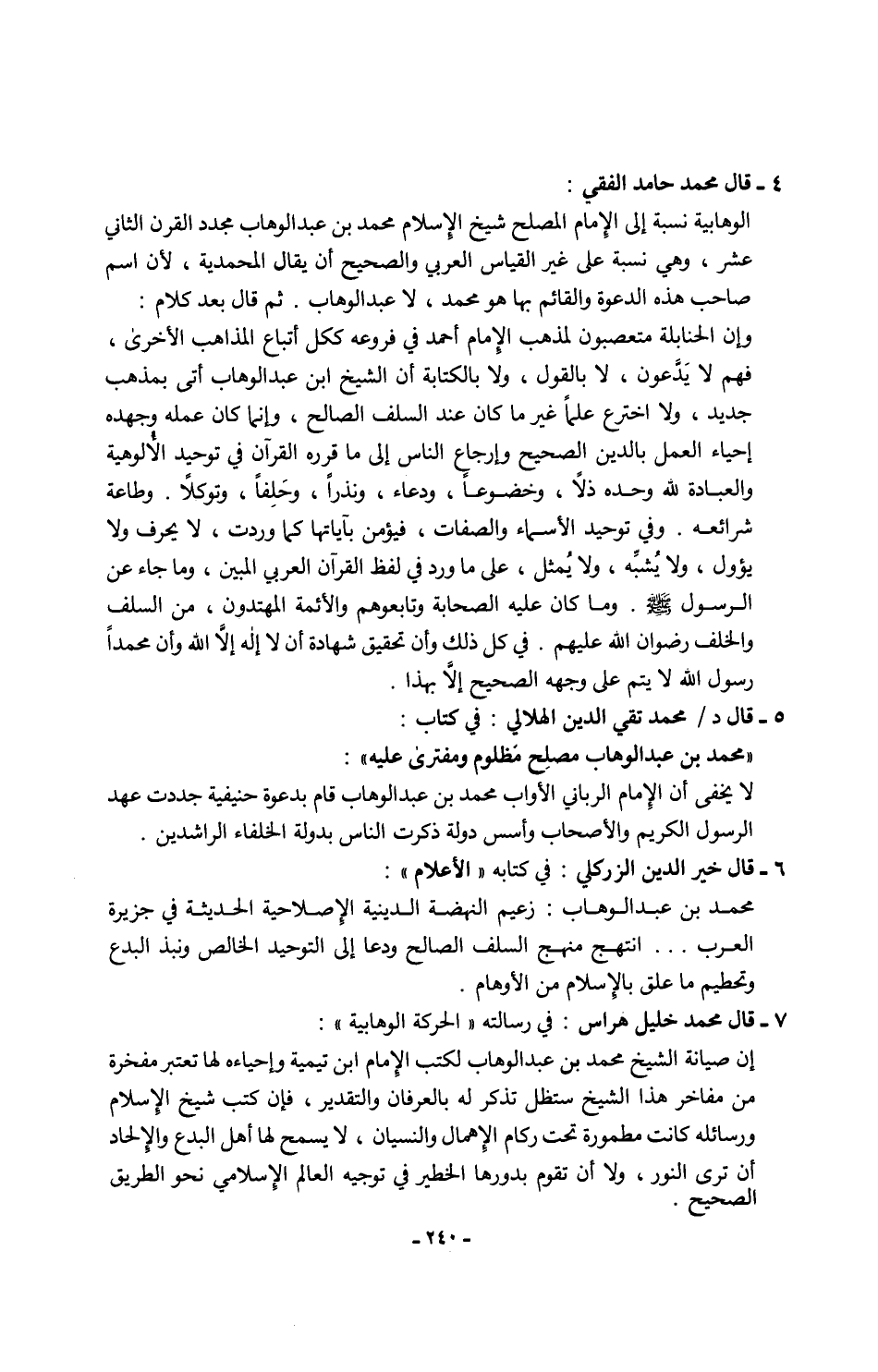 7 - قال محمد خليل هراس: في رسالته "الحركة الوهابية":