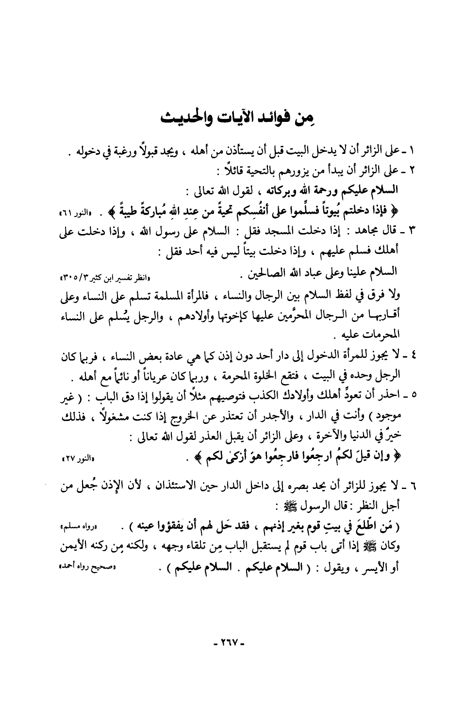 1 - على الزائر أن لا يدخل البيت قبل أن يستأذن من أهله، ويجد قبولًا ورغبة في دخوله.