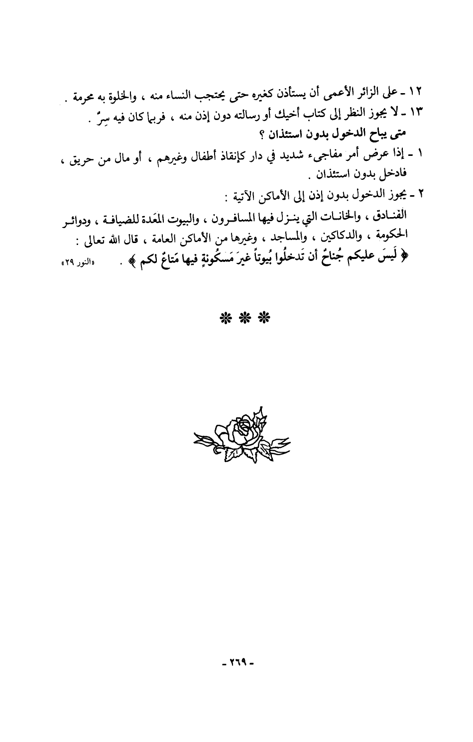 12 - على الزائر الأعمى أن يستأذن كغيره حتى يحتجب النساء منه، والخلوة به محرمة.