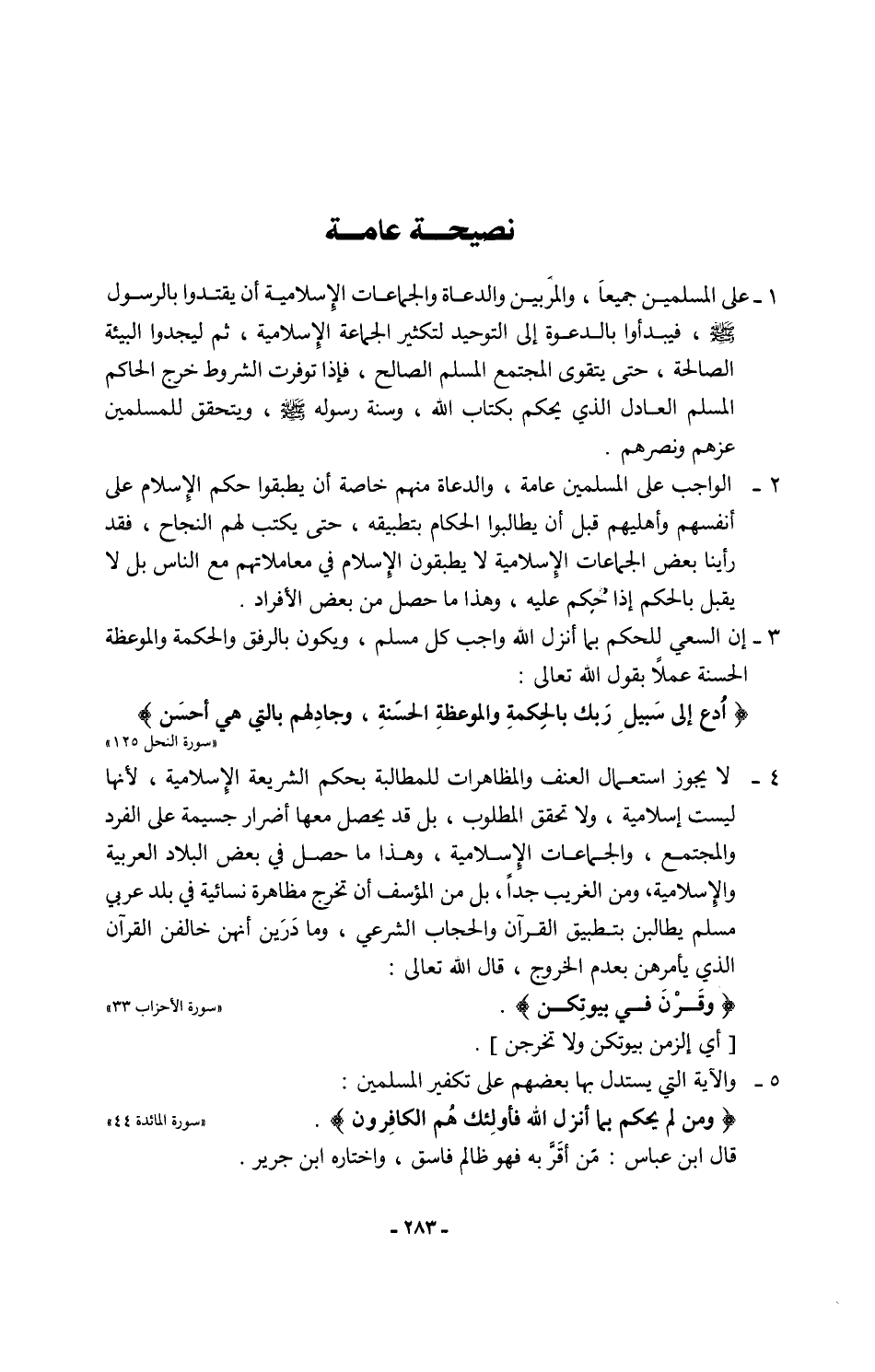 3 - إن السعي للحكم بما أنزل الله واجب كل مسلم، ويكون بالرفق والحكمة والموعظة الحسنة عملاً بقول الله تعالى:
