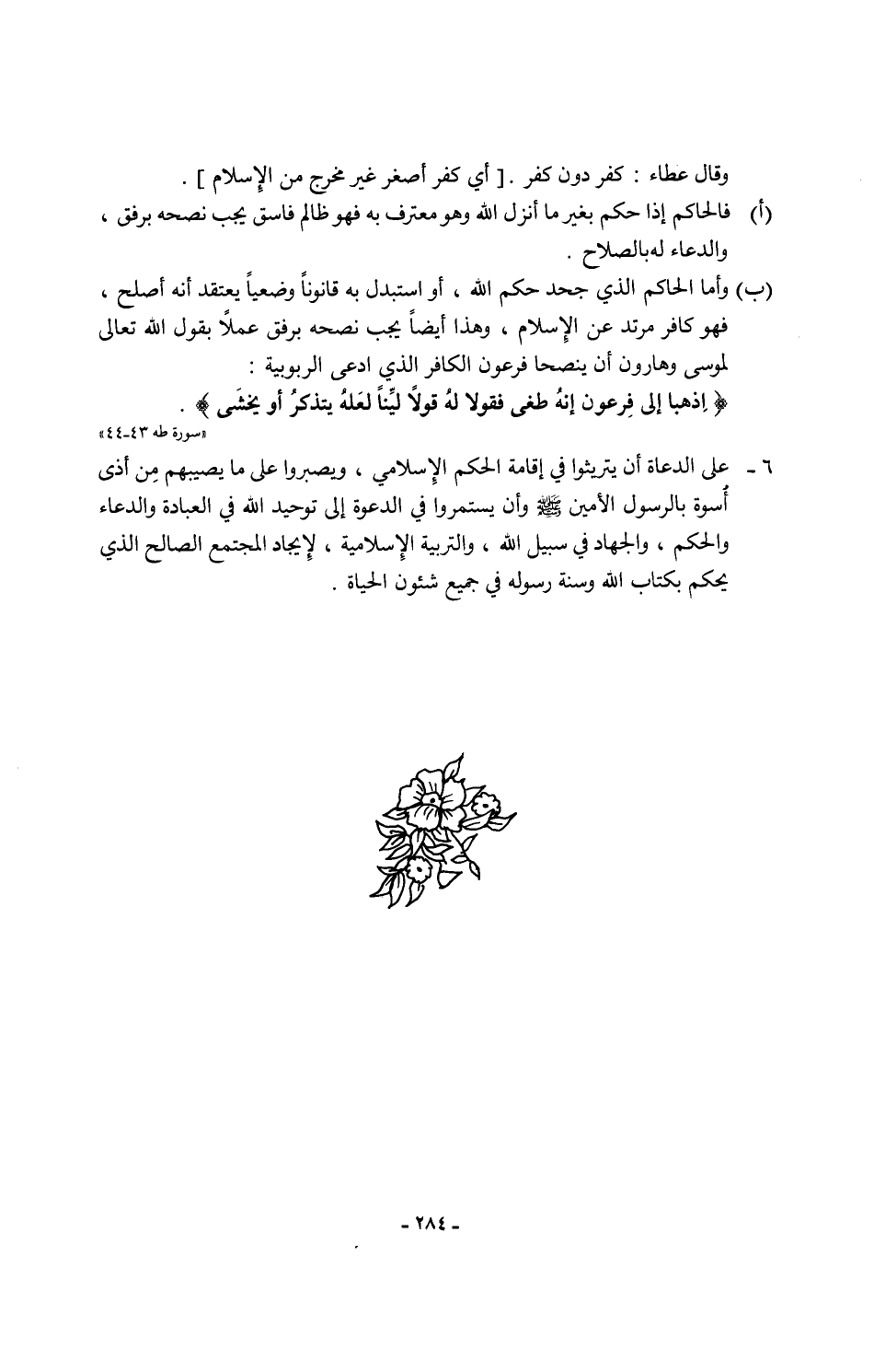 (ب) وأما الحاكم الذي جحد حكم الله، أو استبدل به قانونًا وضعيًا يعتقد أنه أصلح، فهو كافر مرتد عن الإِسلام، وهذا أيضًا يجب نصحه برفق عملاً بقول الله تعالى لموسى وهارون أن ينصحا فرعون الكافر الذي ادعى الربوبية: