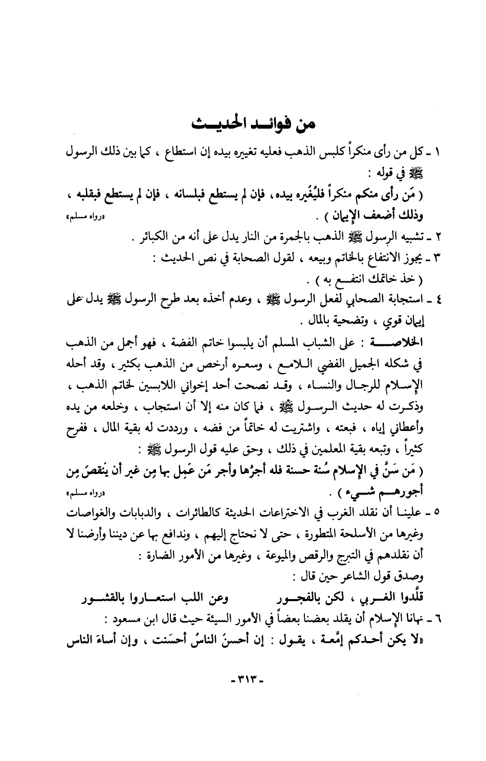 1 - كل من رأى منكرًا كلبس الذهب فعليه تغييره بيده إن استطاع، كما بين ذلك الرسول - صلى الله عليه وسلم - في قوله: